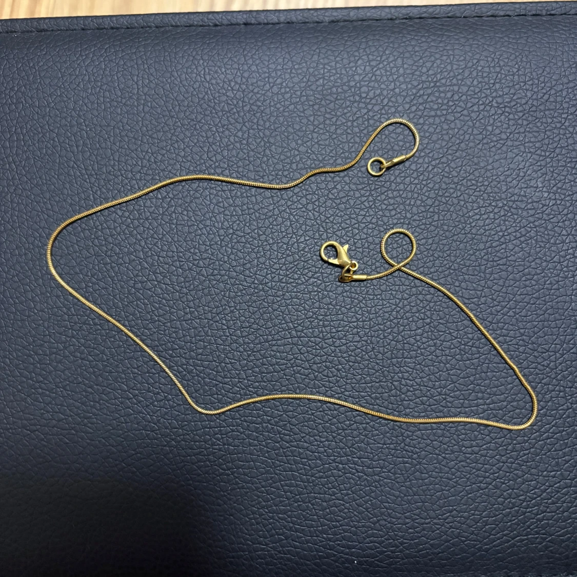 Säljer en stilren och tunn halskedja i guldfärg med smidig karbinlås. Perfekt för att bära ensam kombinera med andra smycken för en personlig look. Kedjan har en enkel och klassisk design som passar till många olika stilar.