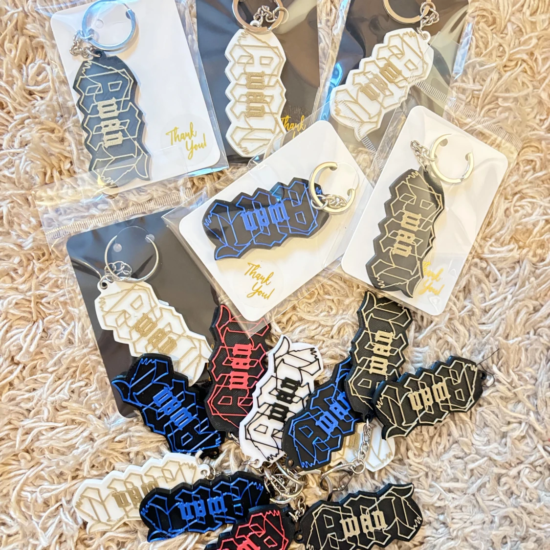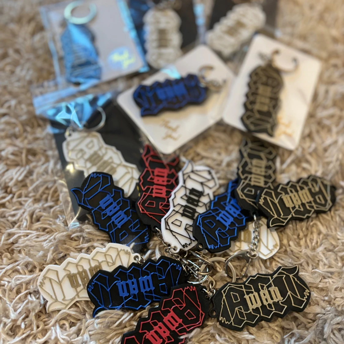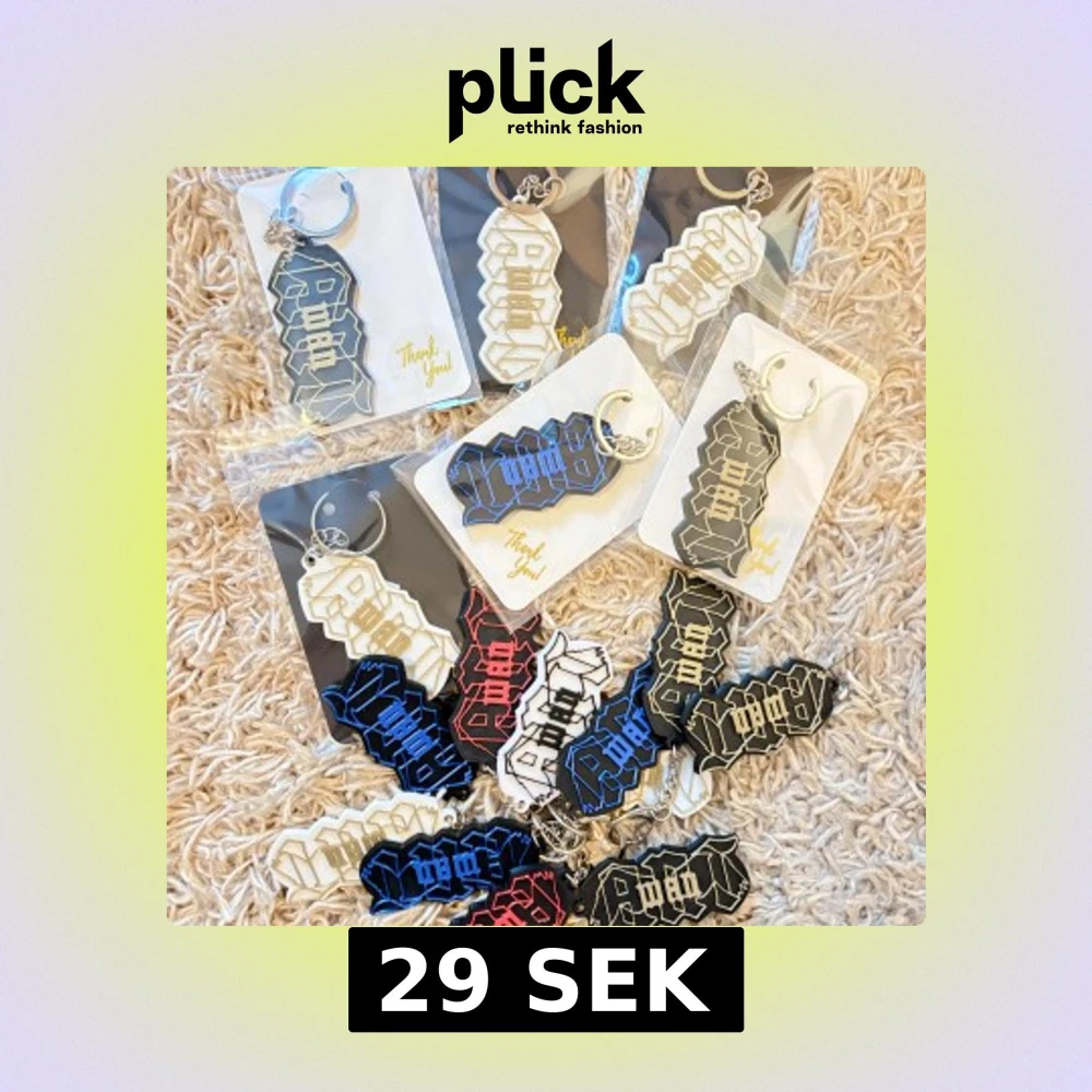 Säljer flera nyckelringar med fet graffiti-inspirerad text i olika färger som svart, vit, blå och röd. Nyckelringarna har metallkedja och är gjorda i slitstark syntet. Vissa har texten '12 OKT ART WAR TELE2' på baksidan. Hör av vid intresse eller eget förslag på en design🌸29 st🙌