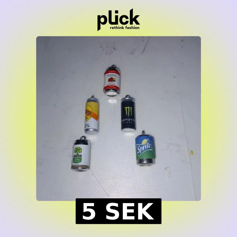 Fem coola halsbandshängen som ser ut som små burkar av Monster, Sprite, Somersby, Rekorderlig och en gul dryck. Perfekt för dig som vill sticka ut med roliga och färgglada accessoarer. Hängena är i silverfärgad metall med detaljerade etiketter.