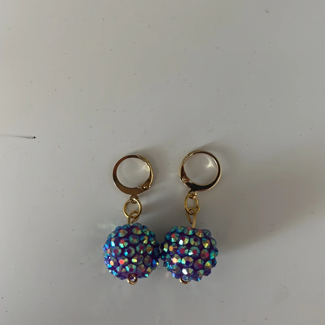 Hemmagjorda guldörhängen med en stor lila pärla💕 Säljs i par