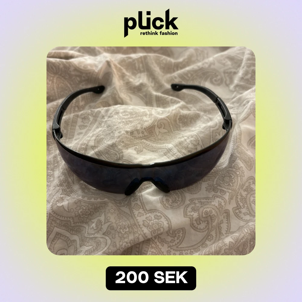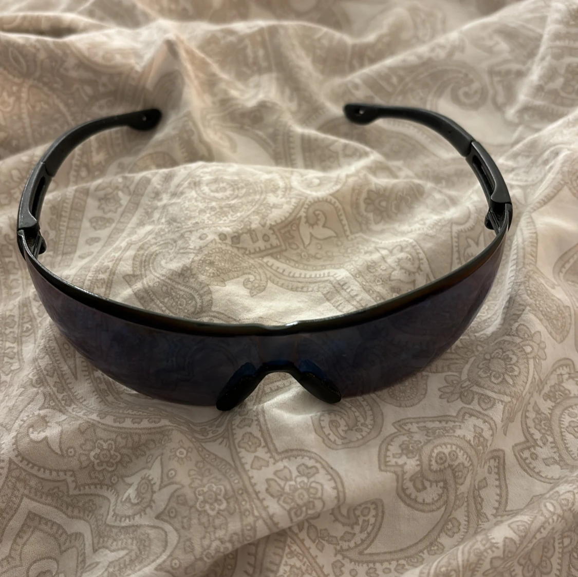 Säljer ett par sportiga solglasögon från Leja i mycket bra skick. De har en cool blå och svart design med en wrap-around stil som ger bra skydd mot solen. Perfekta för utomhusaktiviteter och sommaräventyr! 😎