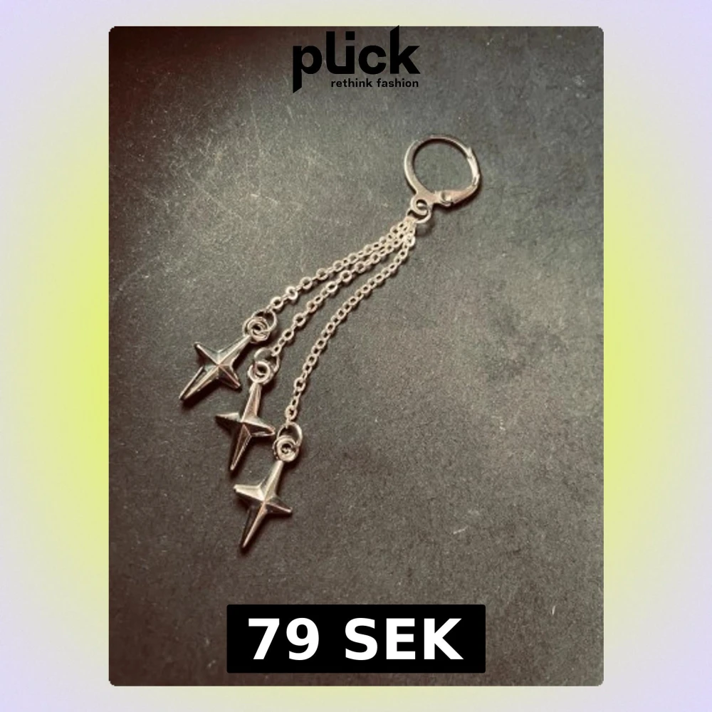 ett snyggt öronhänge i silverfärgad metall med tre kedjor och hängande stjärnberlocker. Perfekt accessoar för dig som gillar detaljer som sticker ut och ger en cool vibe till din stil.