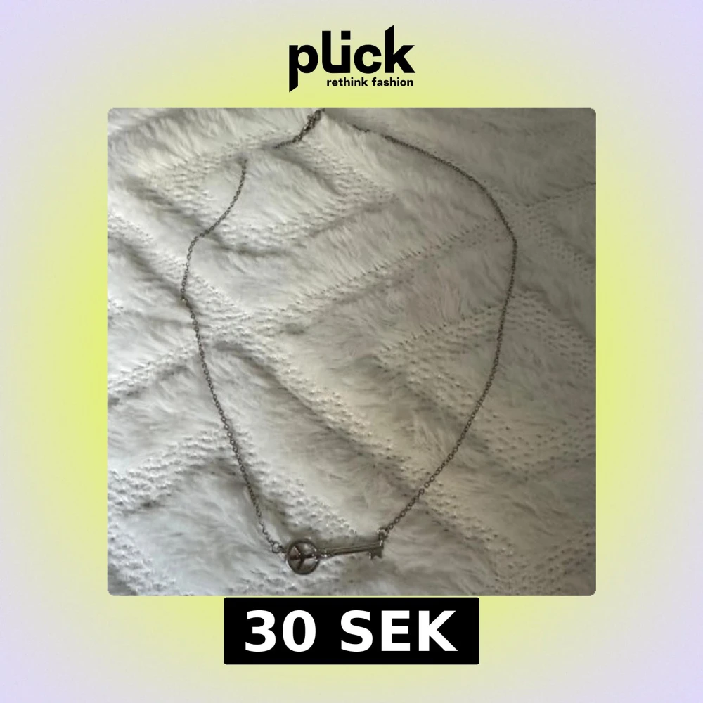 Snyggt halsband i silverfärg med en tunn kedja och en berlock formad som en nyckel med peace-symbol. Perfekt accessoar för dig som gillar unika detaljer och vill sticka ut lite extra.