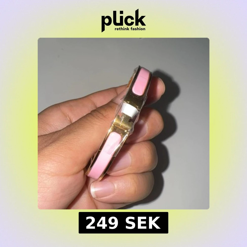 Supersnyggt armband från H i guldmetall med ljusrosa emaljdetaljer. Klassisk H-formad låsning som ger en lyxig och trendig vibe. Perfekt accessoar för att lyfta din outfit med en pop av färg och exklusiv känsla.