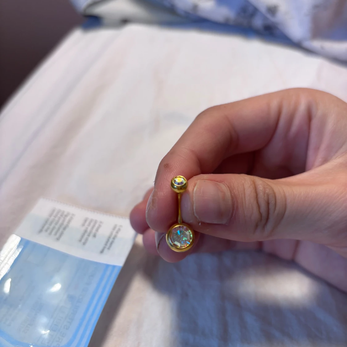 Guld navelpiercing med glittrig sten helt oanvänd!