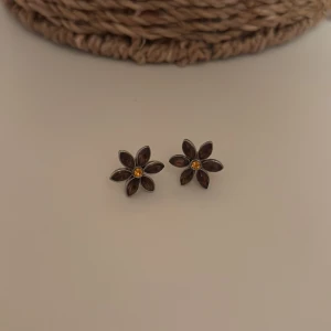 Charmiga örhängen i form av blommor med sex kronblad. Varje blomma har en gul detalj i mitten som ger en fin kontrast. Perfekta för att lägga till en subtil touch av naturinspirerad stil.