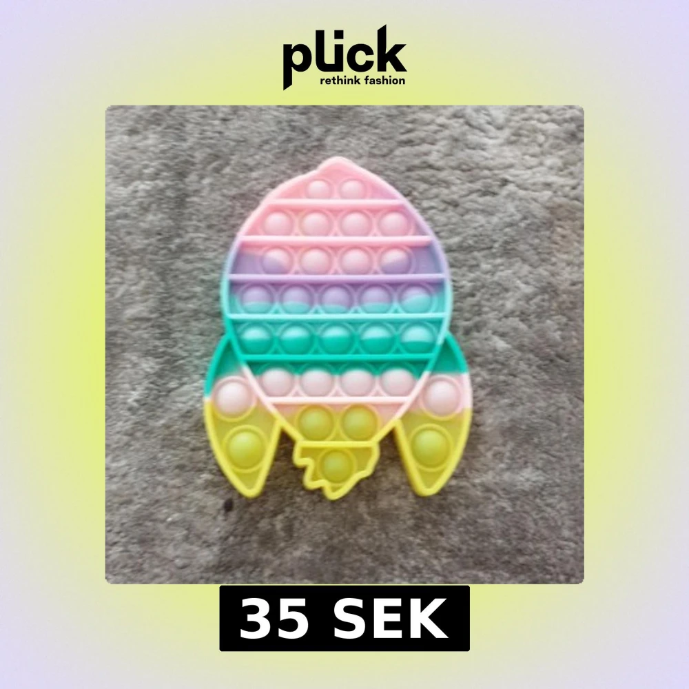 Bilderna visar en färgglad pop it-leksak i form av en raket, inte en bok. Den har pastellfärger i rosa, lila, grön och gul. Produkten är avsedd för stresslindring och lek, men är inte relevant för bokkategorier.
