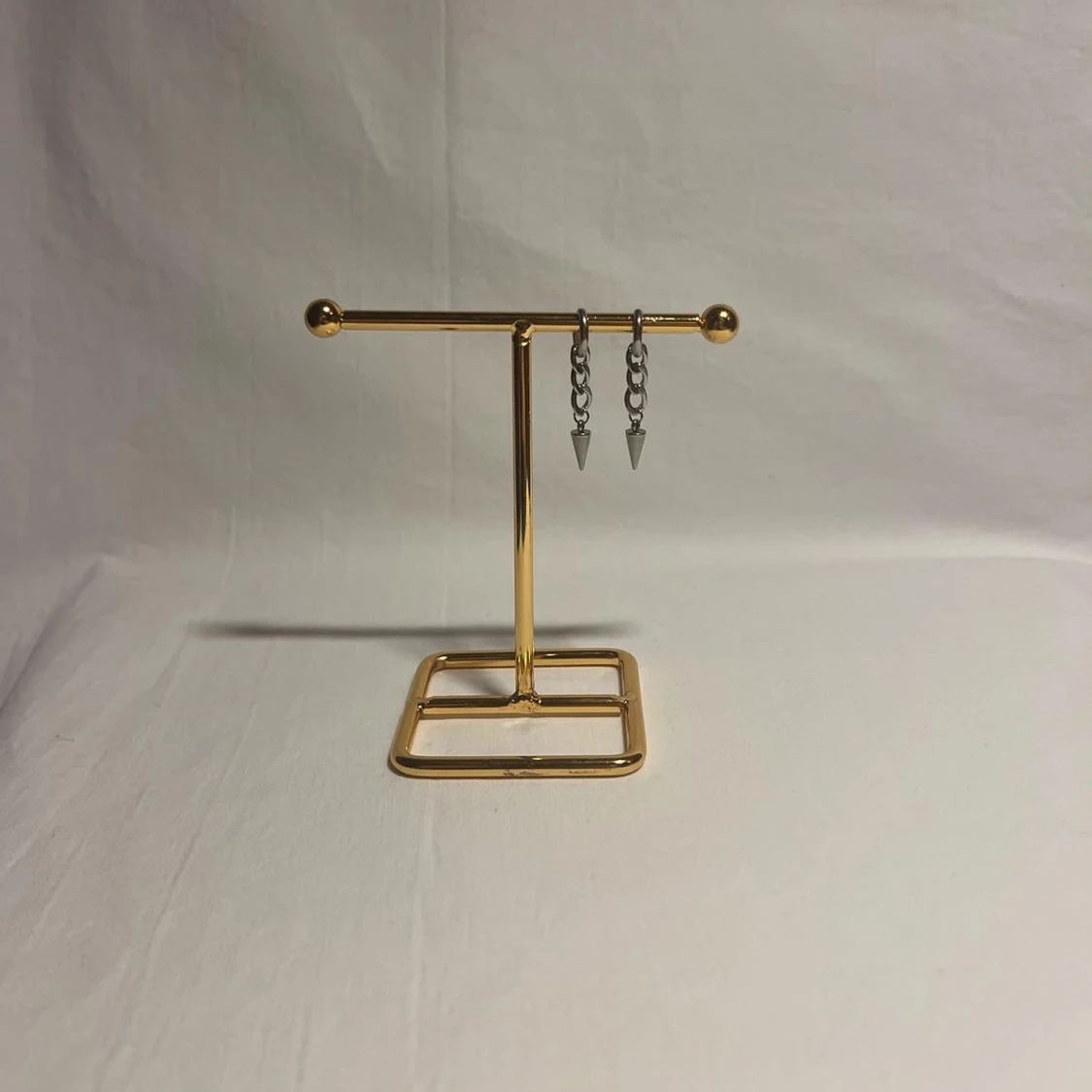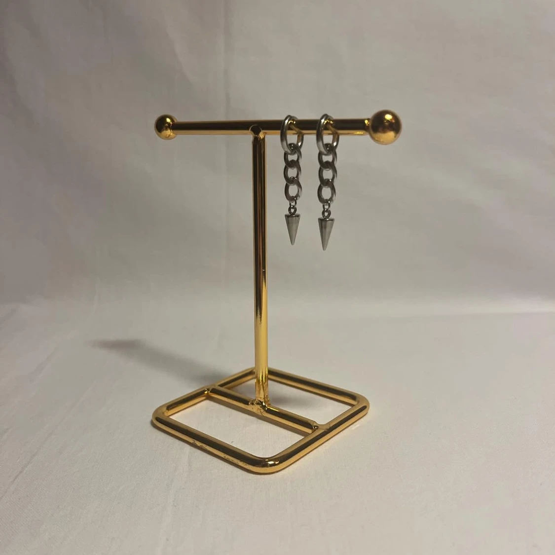 Säljer ett par coola örhängen i silverfärgad metall med kedjor och spetsiga spikes som hänger längst ner. Perfekt för dig som gillar edgy och stilrena detaljer. Örhängena har en modern vibe och passar till streetwear eller rockig stil.