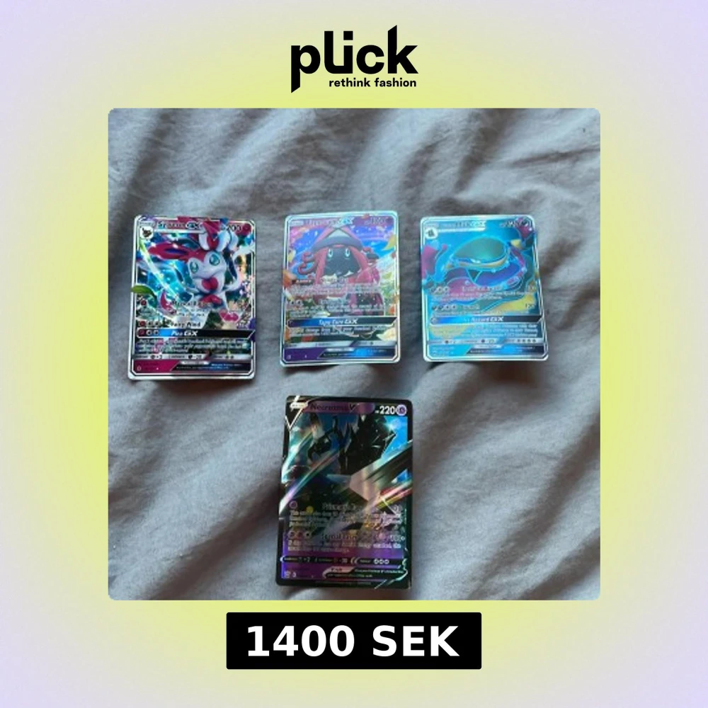 Samling av Pokémon GX och V-kort med holografisk design. Inkluderar kort med olika Pokémon som Sylveon, Tapu Lele, Metagross och Necrozma. Perfekt för samlare eller spelare som vill förstärka sin kortlek med kraftfulla och visuellt imponerande kort. Obs igen frakt!