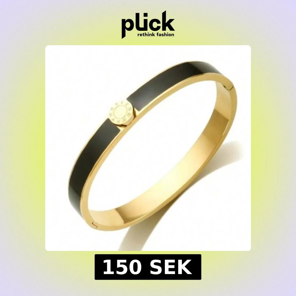 Snyggt armband i svart och guld med en rund detalj i mitten som har romerska siffror runt om. Armbandet har en stilren och modern design, perfekt för att ge din outfit lite extra edge. Metallmaterial och blank finish.