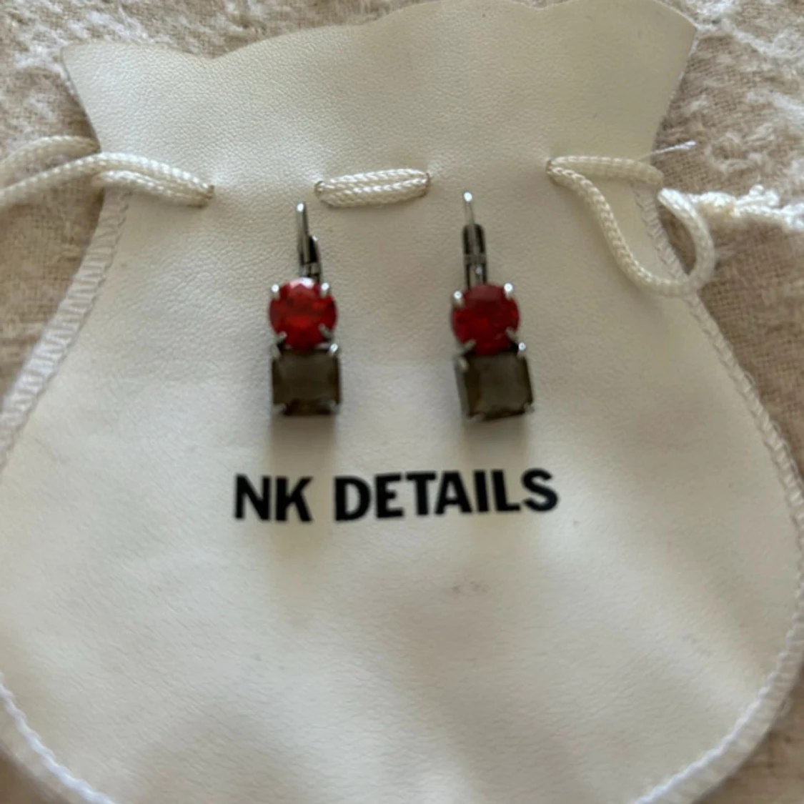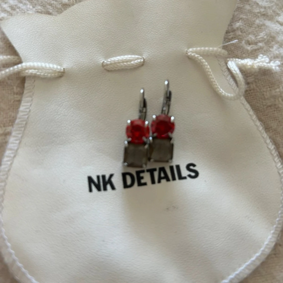 Snygga örhängen från Deberg Kern med en cool kombination av röd rund sten och fyrkantig mörk sten i silverfärgad infattning. Perfekt för dig som vill sticka ut med färg och form. Lätta att bära med smidig stängning.