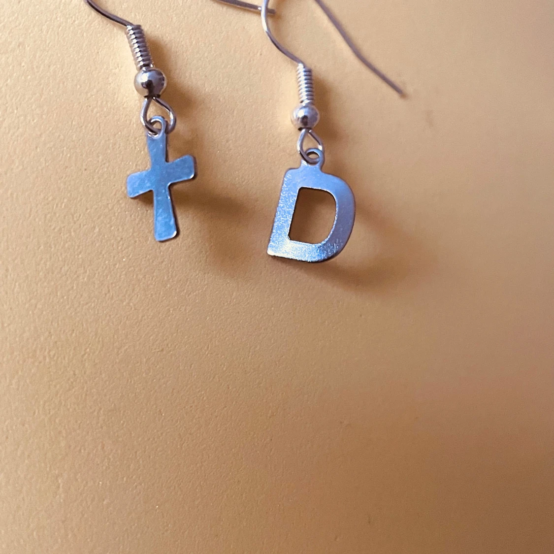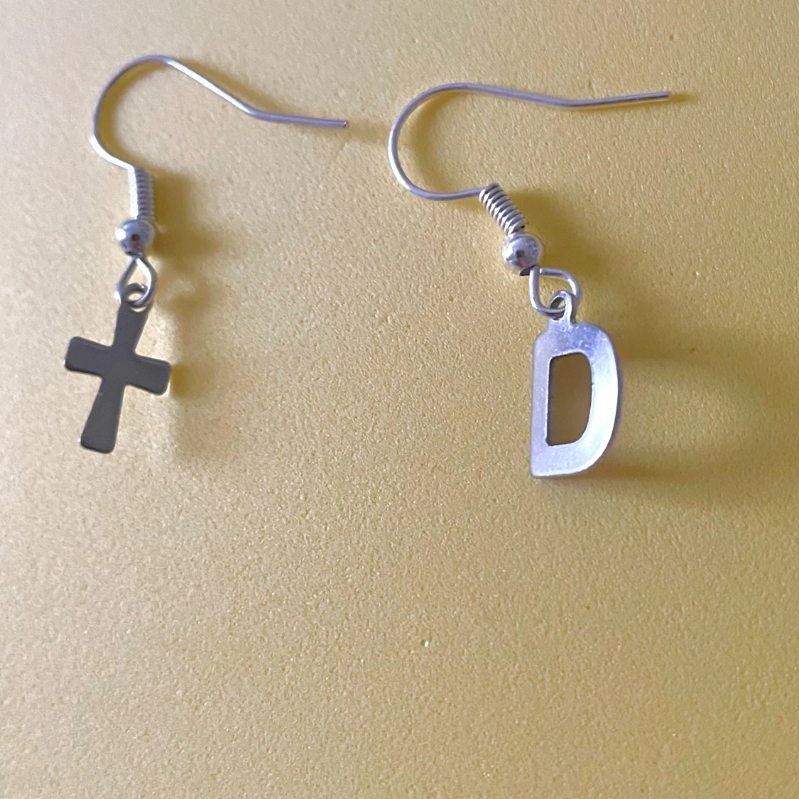 Snygga silverörhängen med ett kors och valfri bokstav. Perfekta för att ge en personlig touch till din stil. De är lätta och bekväma att bära hela dagen.
