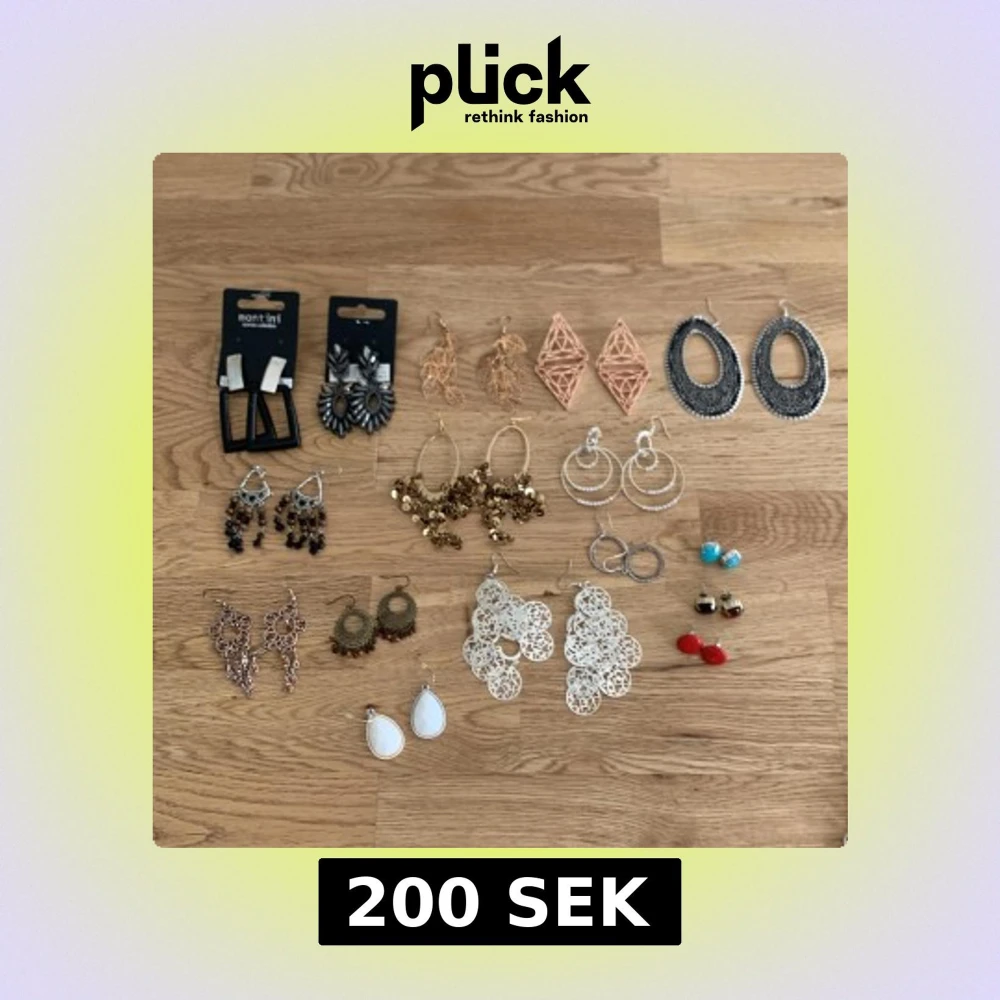 Säljer ett mixat paket med 16 par örhängen i olika färger och former. Här finns allt från stora silvriga hoops, guldiga hängande örhängen med paljetter, vita droppar, röda och turkosa studs till geometriska och blommiga designs. Perfekt för dig som vill variera din stil! stycke pris kan diskuteras!