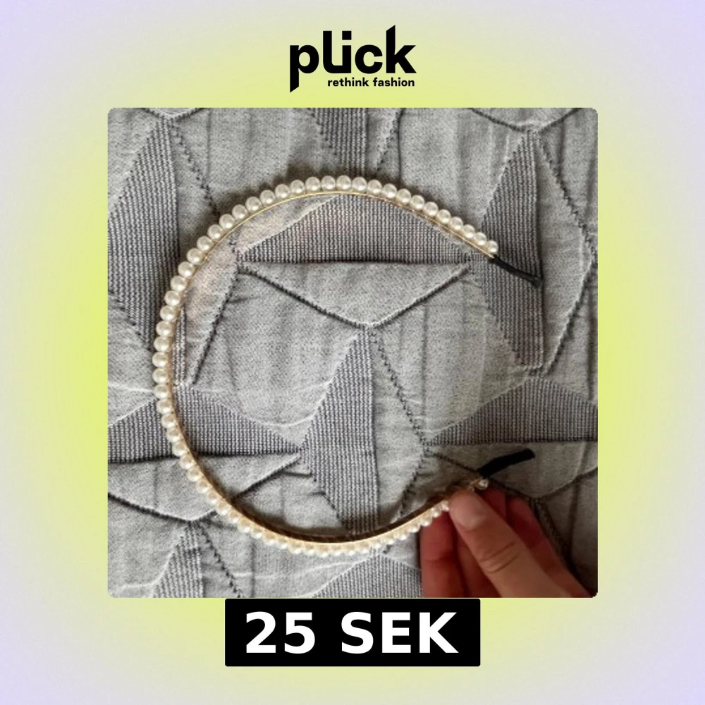 Snyggt diadem med vita pärlor längs hela bågen. Diademet har en tunn, guldig stomme och pärlorna ger en elegant och trendig look. Perfekt accessoar för att lyfta din outfit och ge en extra touch av stil.