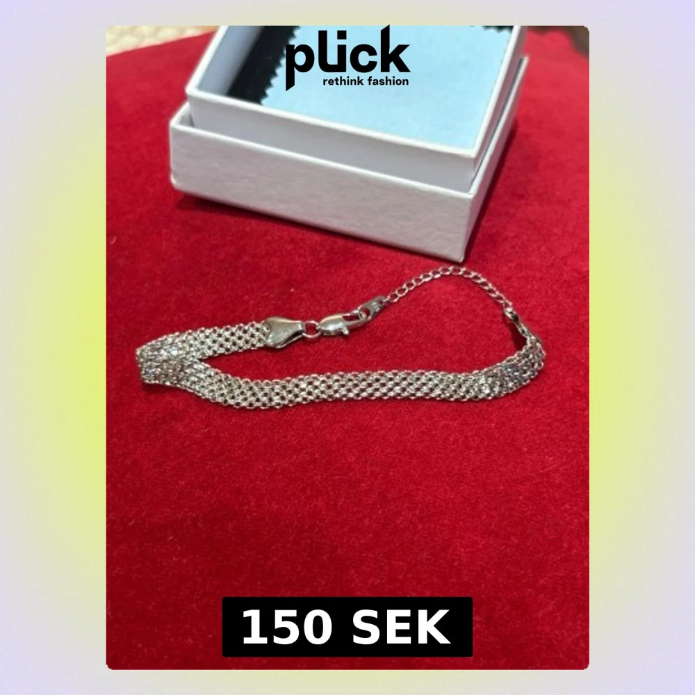 Säljer silver armband med stämpel på 925 glittrande utseende och är tillverkad i syntetmaterial. Perfekt för dig som vill sticka ut med en unik och trendig look.
