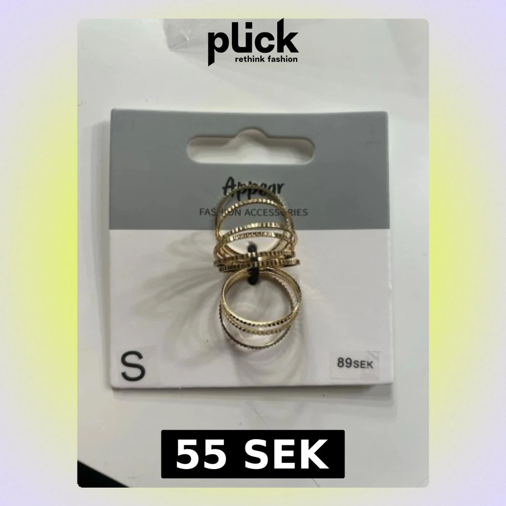 Bilderna visar ett set med guldfärgade ringar från Appear, storlek S