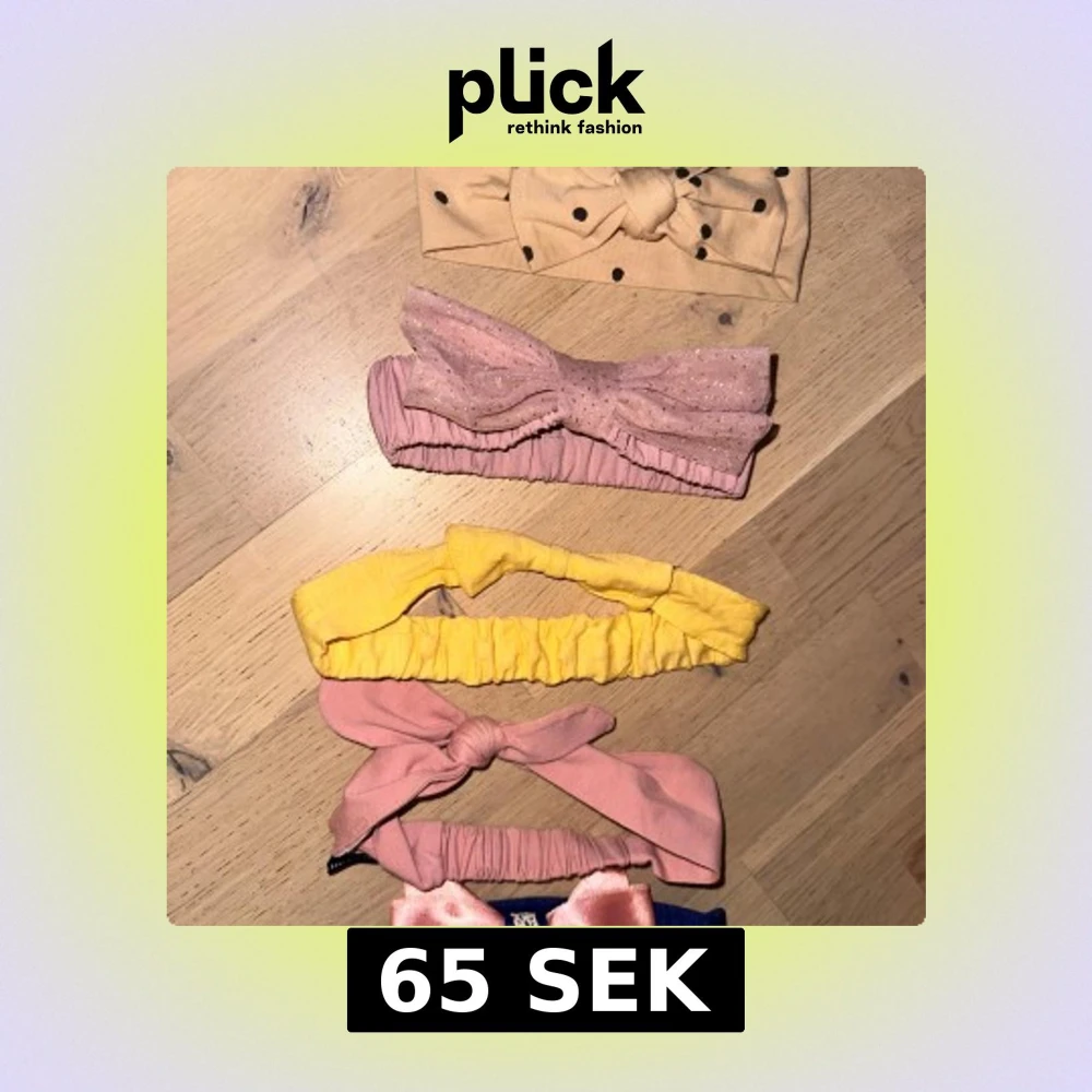 Fem snygga pannband / hårband i olika färger och stilar. Ett beige med svarta prickar och knut, ett rosa med glittrig rosett, ett gult med twist, ett rosa med knut och ett marinblått med stor rosa satinrosett. Perfekta för att lyfta din look med färg och detaljer. Elastiska och perfekta för att piffa upp outfiten med ✨från 3 mån / 6 mån