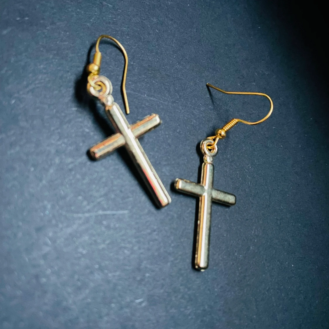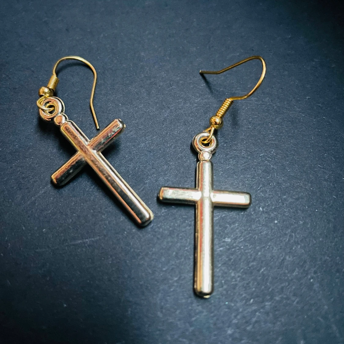 Snygga örhängen med kors finns i både guld- och silverfärg. Hängande modell med enkel och stilren design, perfekta för att ge din look en edgy touch. Passar dig som gillar klassiska smycken med en twist.