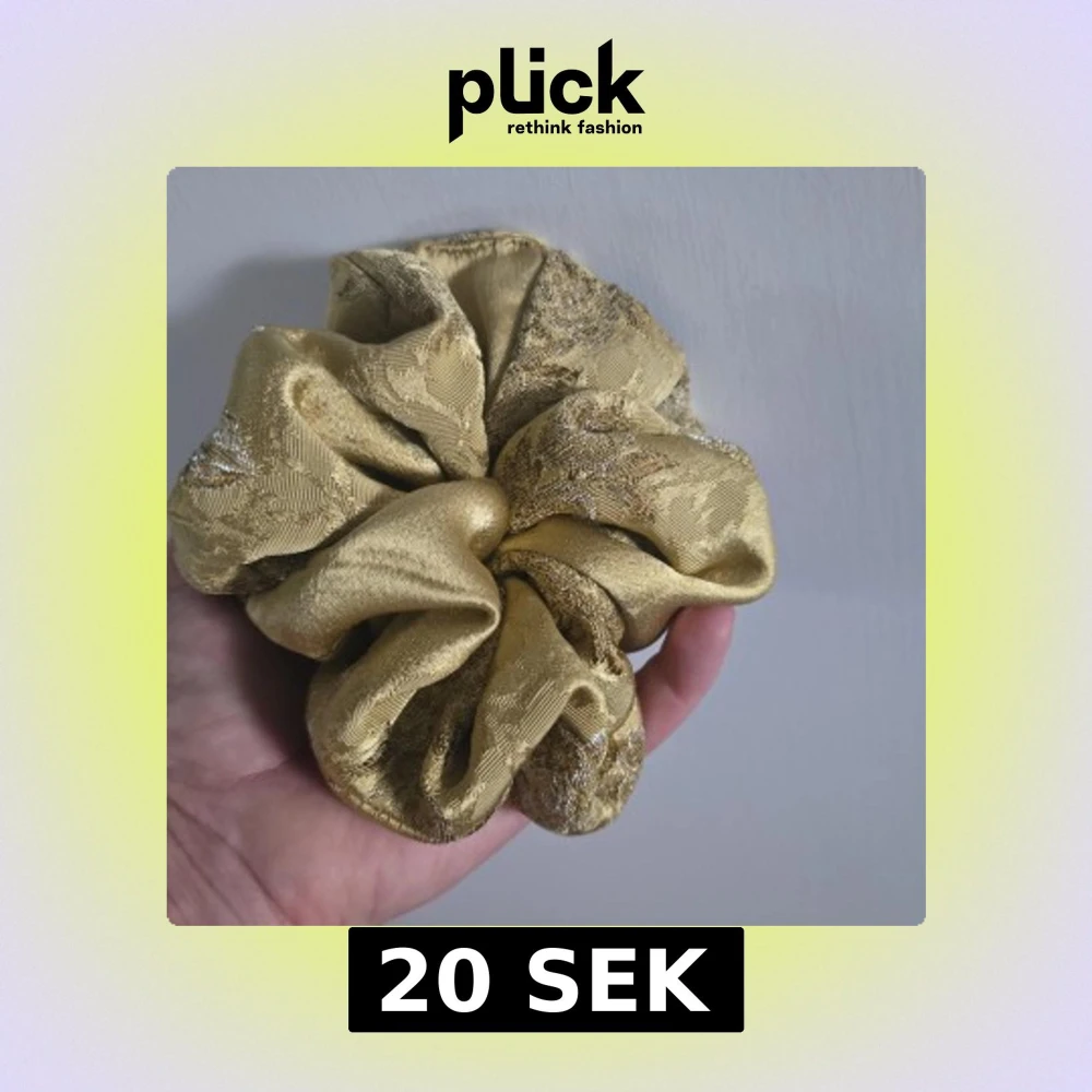 Unik snodd då den är egentillverkad/hemsydd. Av ett vackert guldmönstrat tyg som varit en vintageklänning.