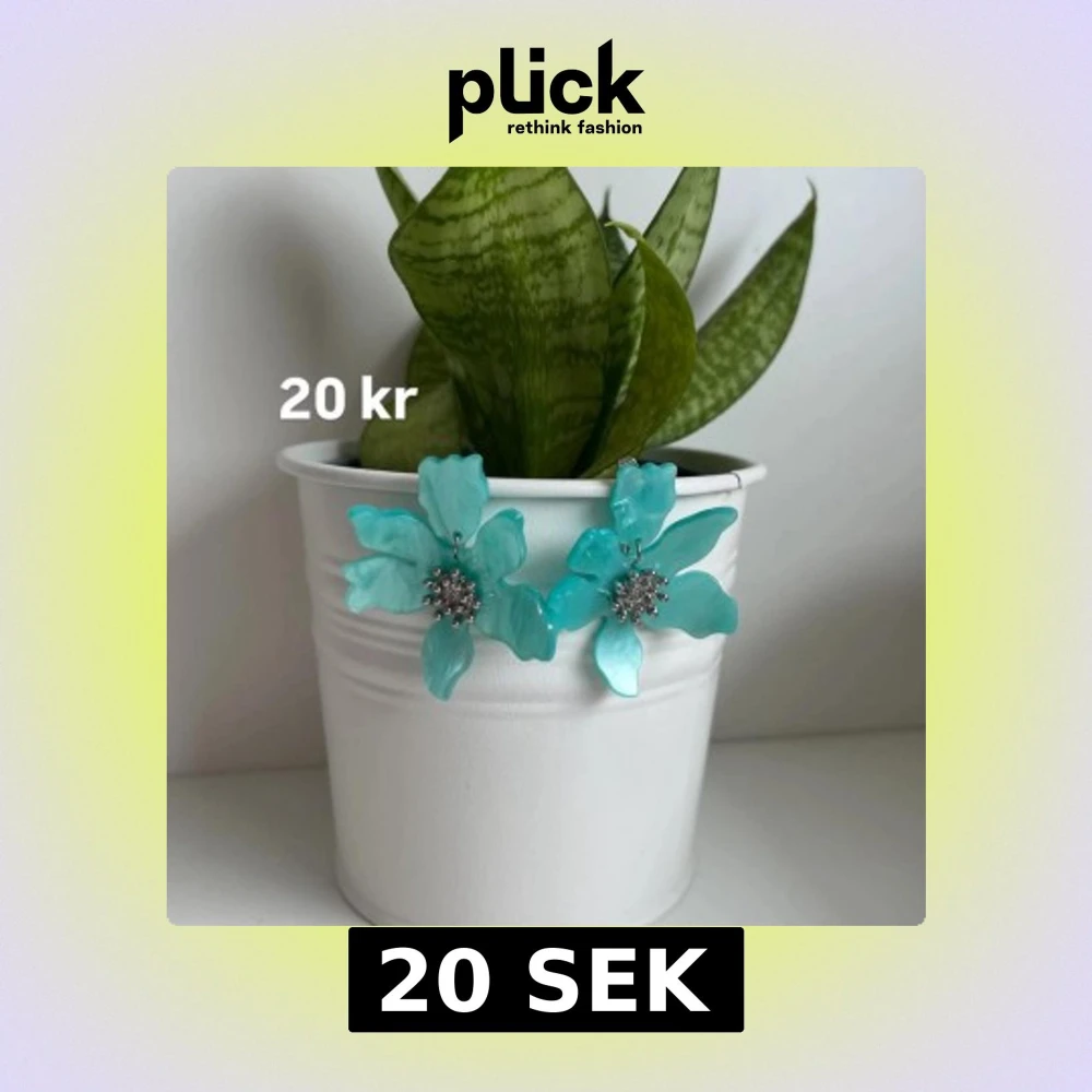 Säljer ett par stora turkosa örhängen i form av blommor med glittriga silverdetaljer i mitten. Perfekta för att ge din outfit en färgklick och unik touch.