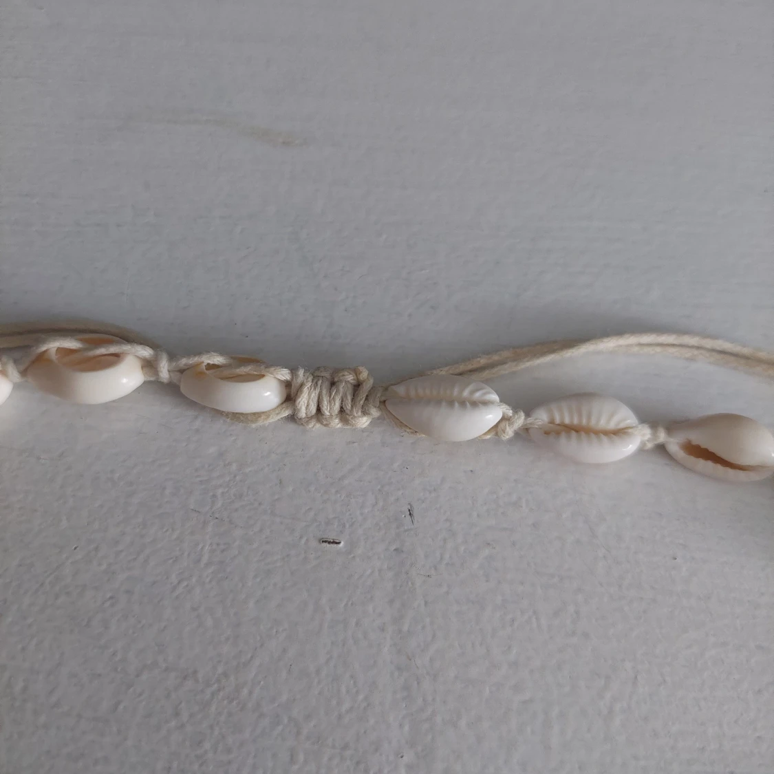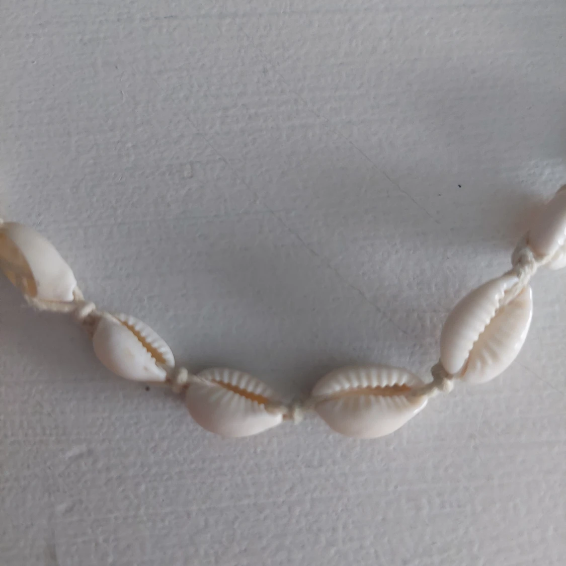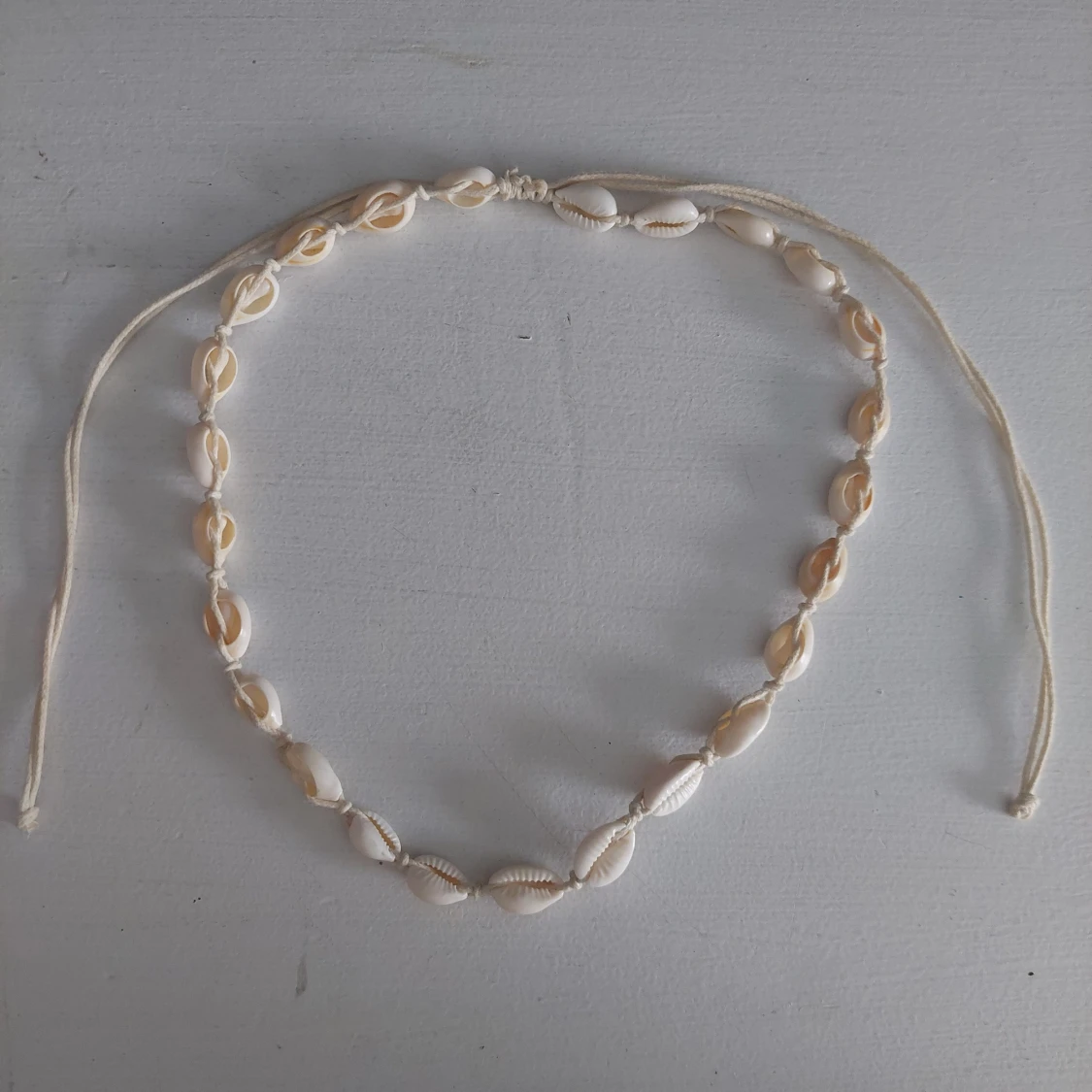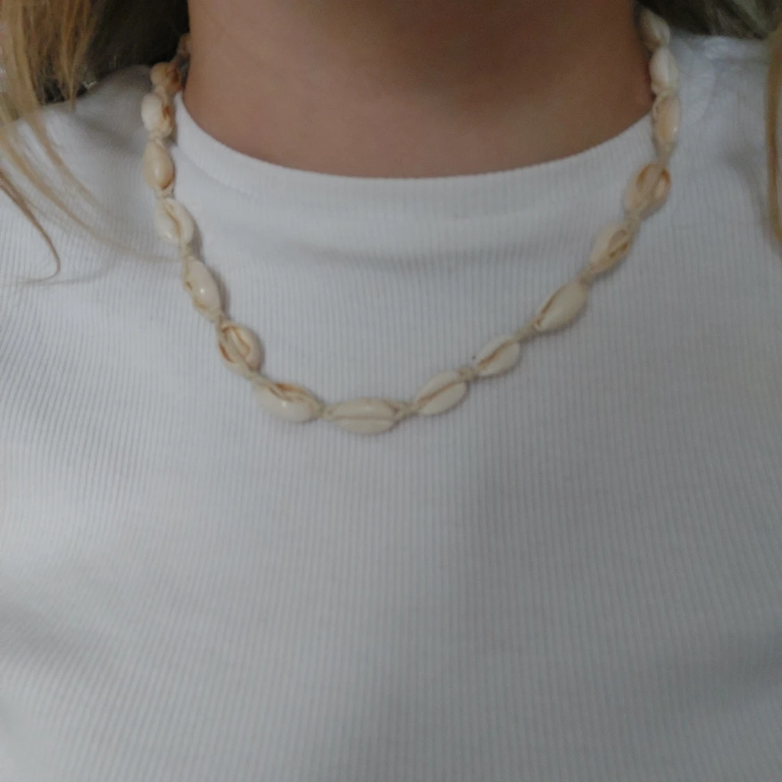 Snyggt halsband med vita snäckor knutna på ett justerbart snöre. Perfekt för en somrig look.