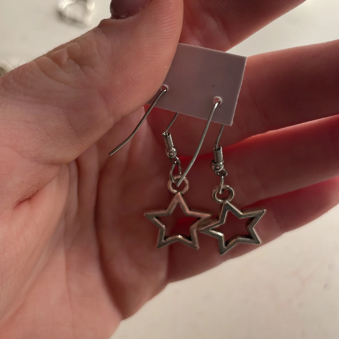 Snygga stjärnformade örhängen i silverfärg. Inte tunga för öronen. Mycket bra skick! (Frakt ingår)