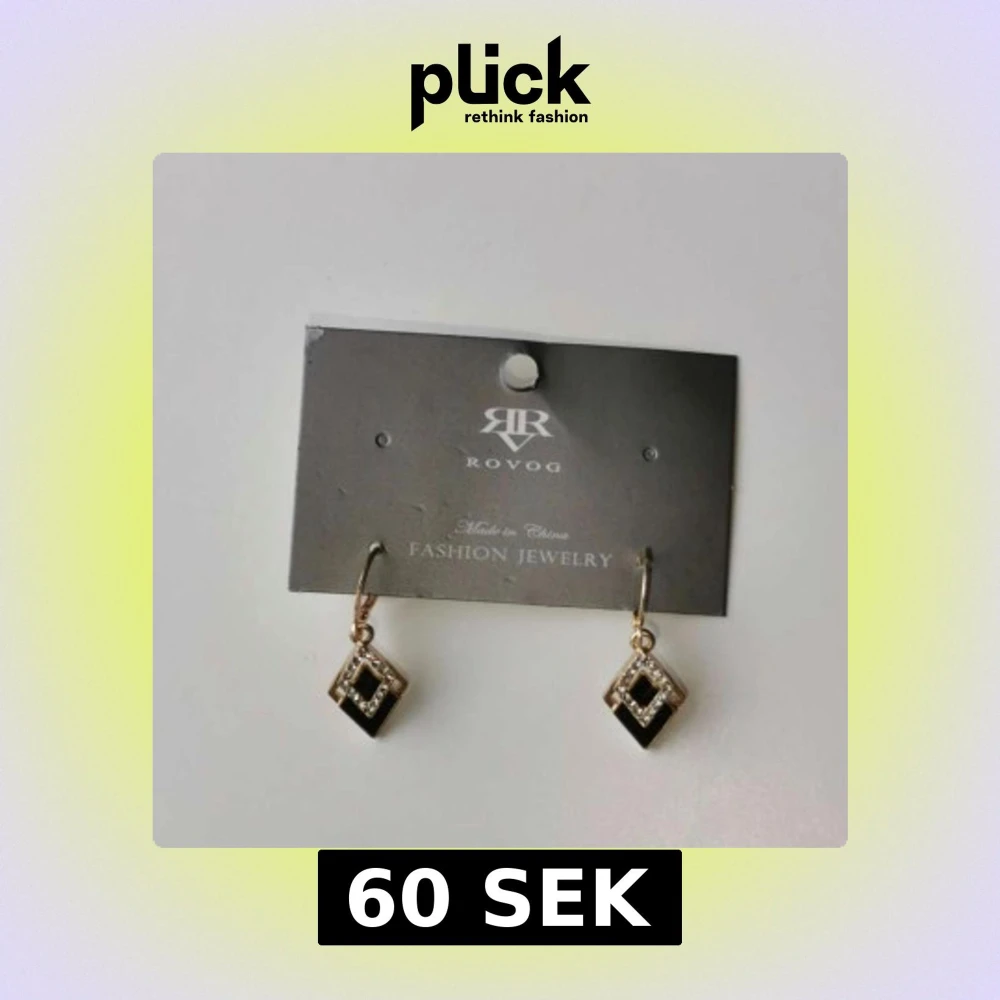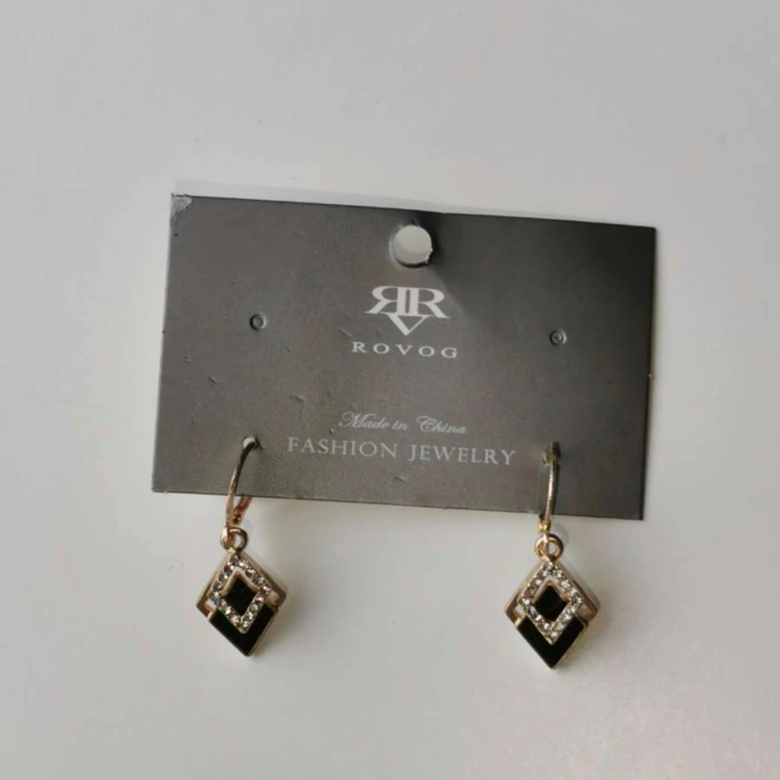 Eleganta örhängen från Rovog med svart diamantformad design och guldfärgade detaljer.