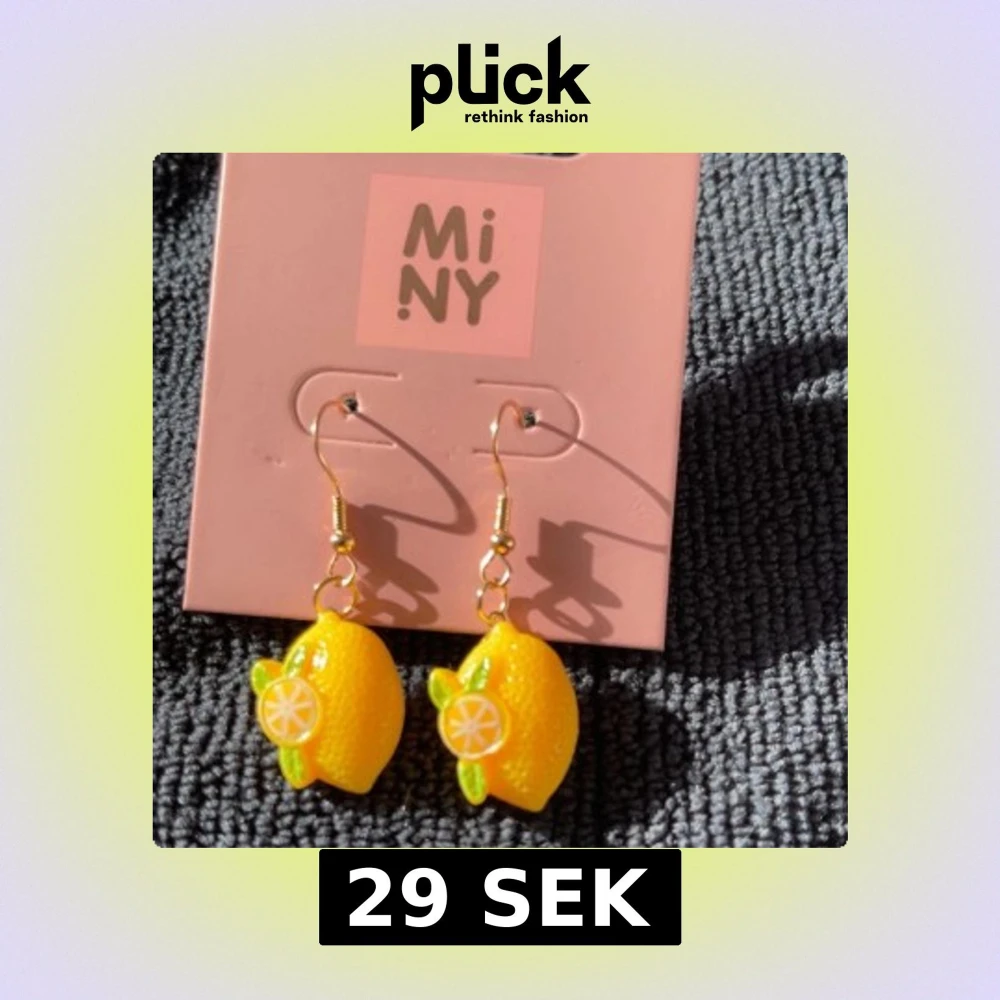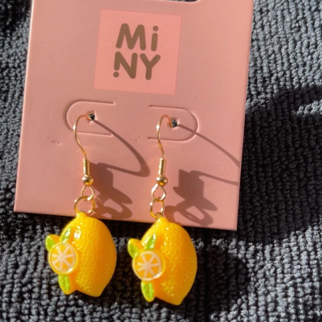 Supergulliga örhängen från MiNY med hängande citroner i starkt gul färg och små gröna blad. Perfekt för dig som vill sticka ut med ett lekfullt och färgglatt smycke. Krokarna är i guldfärg och citronerna har en 3D-effekt.