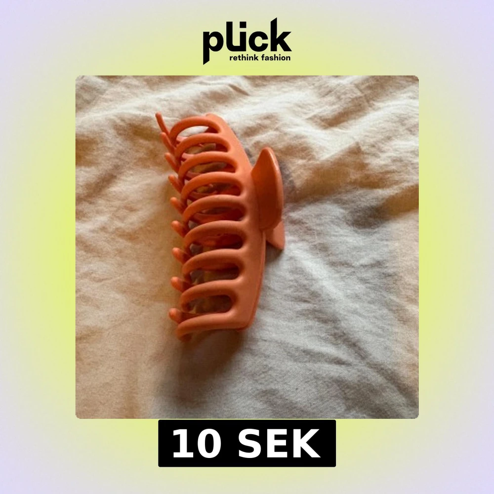 Säljer en stor hårklämma i matt orange plast med klassisk form och starkt fjäderspänne. Perfekt för att snabbt sätta upp håret och få en snygg look. Klämman har breda grepp och rundade kanter som håller håret på plats hela dagen.