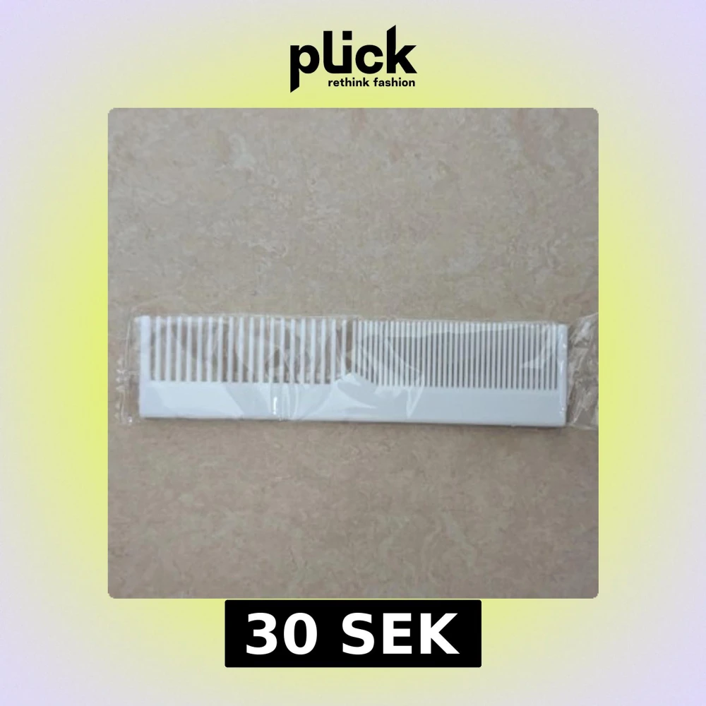 En enkel vit kam i plast med raka, tätt sittande tänder. Perfekt för att styla håret eller reda ut tovor. Kammen är rektangulär och har en clean look som passar alla. Levereras i plastförpackning. Kam förvaras i oöppnad plastförpackning.