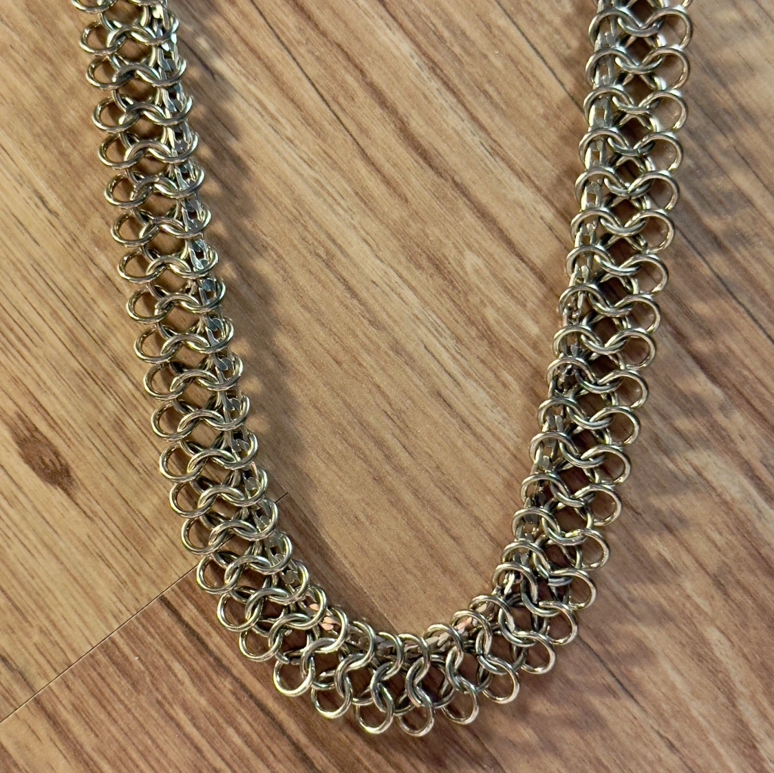 Unikt halsband med bred kedjedesign i guldton. Halsbandet består av tätt sammanlänkade ringar som ger ett coolt och robust intryck. Perfekt för dig som vill sticka ut med ett statement-smycke. Stängs med karbinhake.