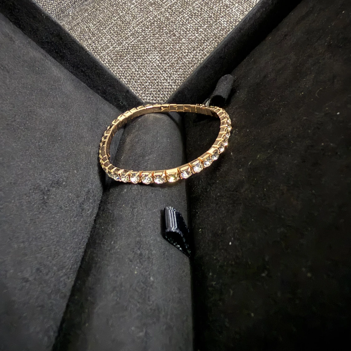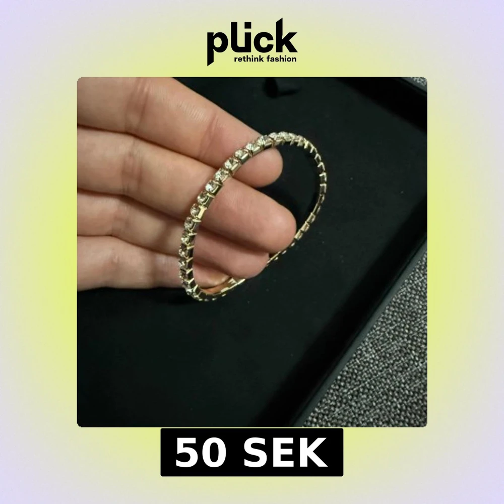 Snyggt armband i guldton med runda, glittrande stenar runt hela bandet. Armbandet har en klassisk och elegant design som verkligen fångar ljuset. Perfekt för dig som vill ha något som sticker ut och ger extra bling till din stil. Helt nya oanvända Vid retur står köparen för Frakten/Returen. Jag ansvarar inte för postens slarv.