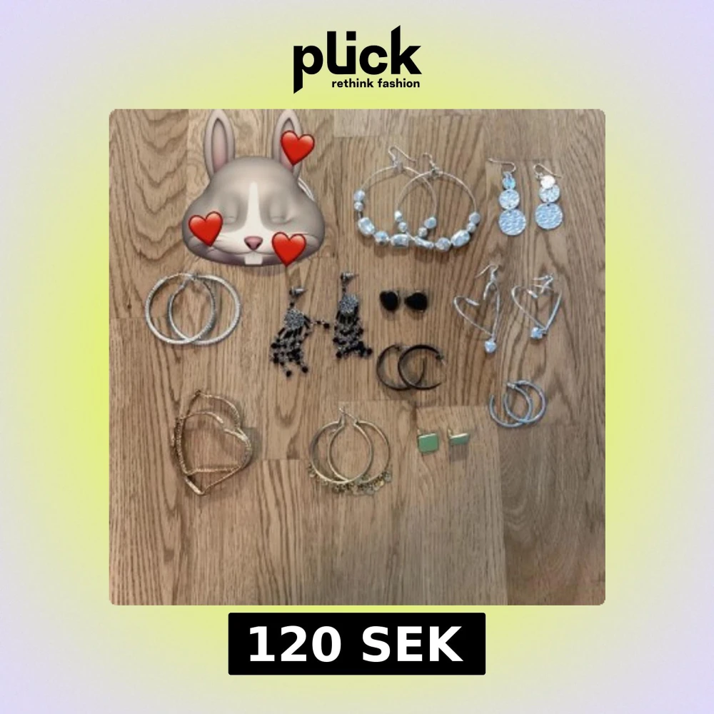 Säljer ett set med olika örhängen: stora och små hoops i silver och guld, hjärtformade örhängen, örhängen med pärlor, svarta hjärtan, gröna fyrkanter och glittriga detaljer. Perfekt för dig som vill variera din stil med både klassiska och trendiga former.Allt för 80 kr, stycke pris 20 kr