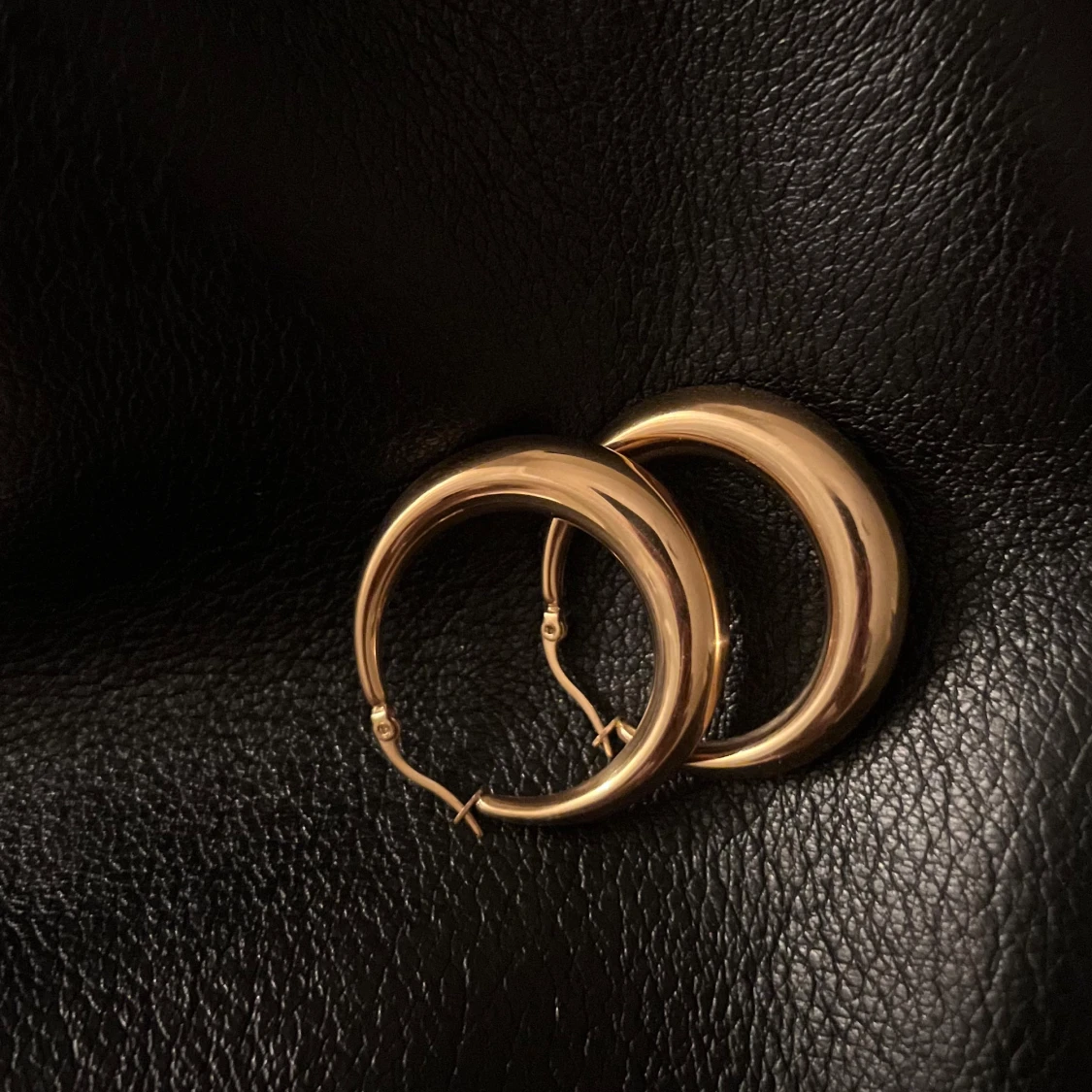 Snygga och eleganta guldiga creoler i en klassisk rund design. Perfekta för att ge en stilren touch till din look. Lätta att matcha med andra smycken.