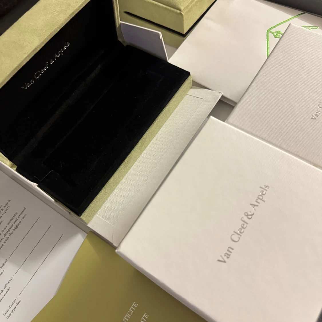 Boxar till Van Cleef, ring, armband, halsband, örhängen etc. Köp till detta om man vill ha med boxen
