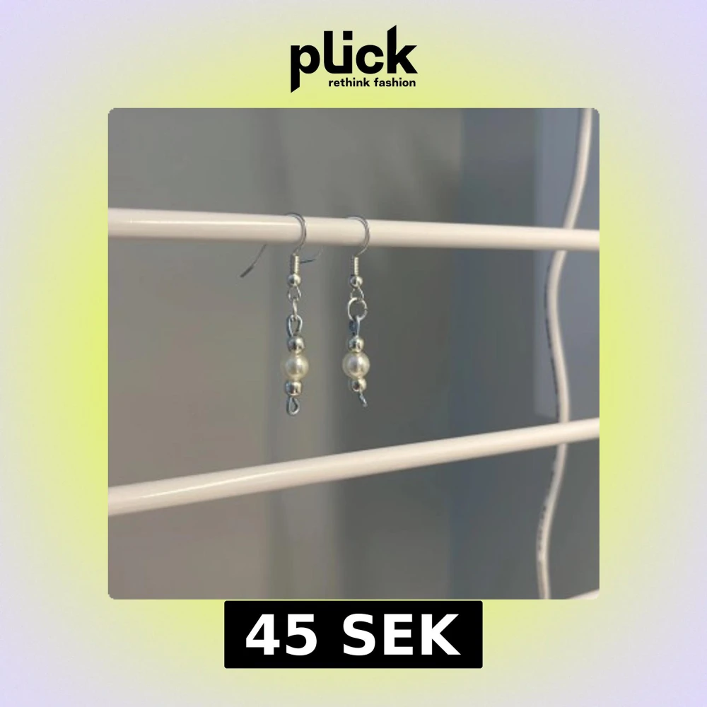 Snygga hängande örhängen i silverfärg med små runda pärlor och metallkulor. De har en enkel och stilren design som passar perfekt till din vardagsstil eller när du vill addera något extra till din look. De är egen gjorda!