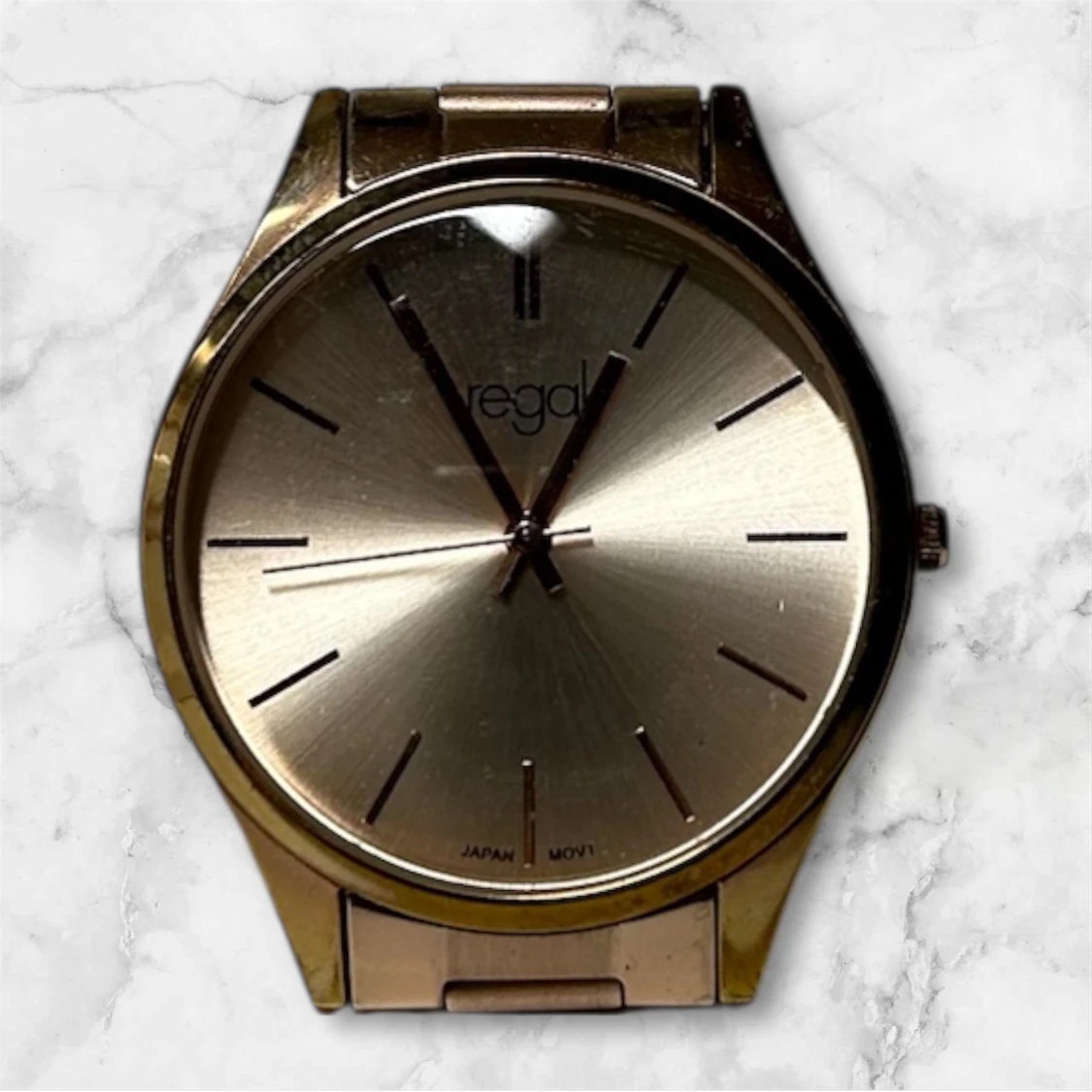 Stilren klocka från Regal i roséguld med metallarmband och minimalistisk urtavla. Klockan har en rund form och enkla indexmarkeringar utan siffror, vilket ger en clean och modern look. Perfekt accessoar för dig som gillar en klassisk men trendig stil.