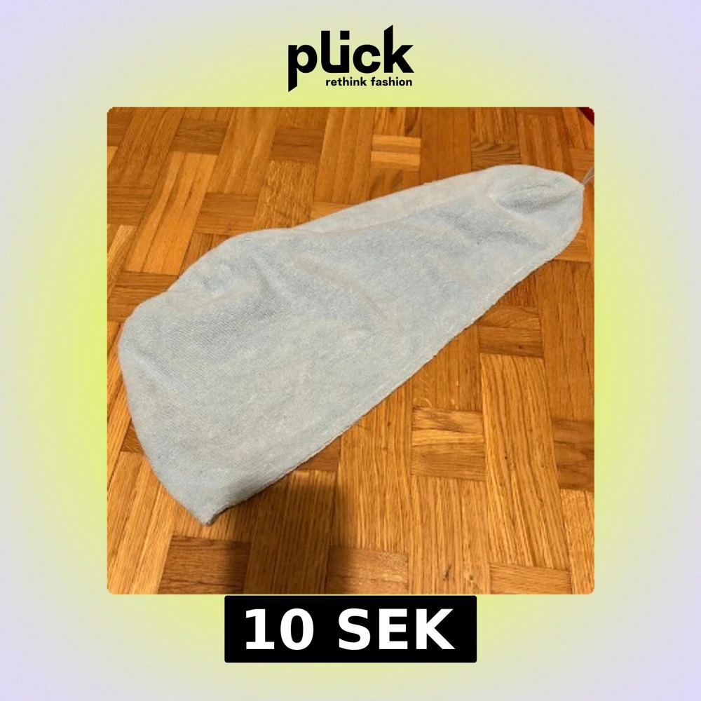 Säljer en ljusblå turbanmössa i mjuk frotté med elastisk ögla för enkel fastsättning. Perfekt att använda efter dusch eller bad för att hålla håret på plats. Materialet är 90% polyester och 10% polyamid, vilket gör den superabsorberande och lätt.