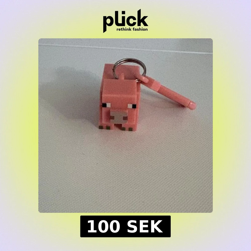 Säljer en söt nyckelring i form av en gris från Minecraft. Nyckelringen är rosa och har en fyrkantig, pixlig design som påminner om spelet. Perfekt att hänga på väskan eller nycklarna för alla Minecraft-fans!
