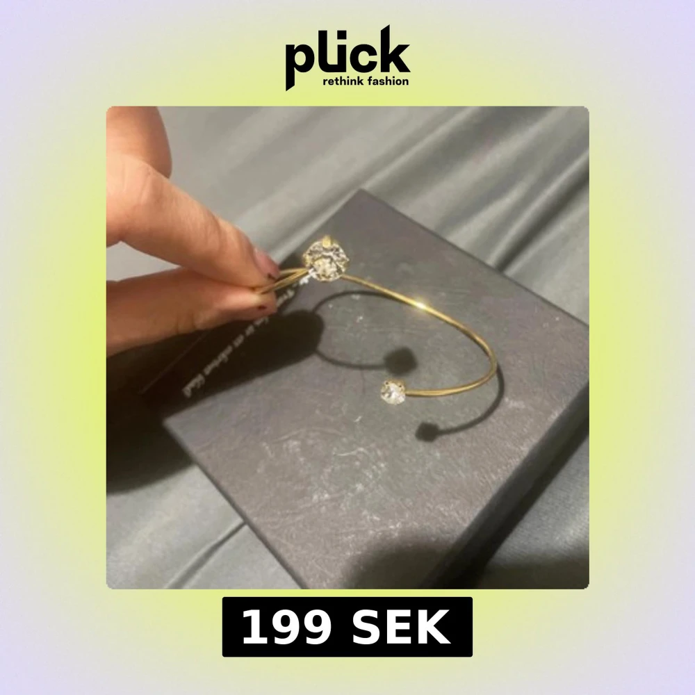 Elegant guldarmband med två gnistrande kristaller i olika storlekar. Armbandet har en öppen design som gör det enkelt att justera och bära. Perfekt för att lägga till en touch av glamour till din outfit.