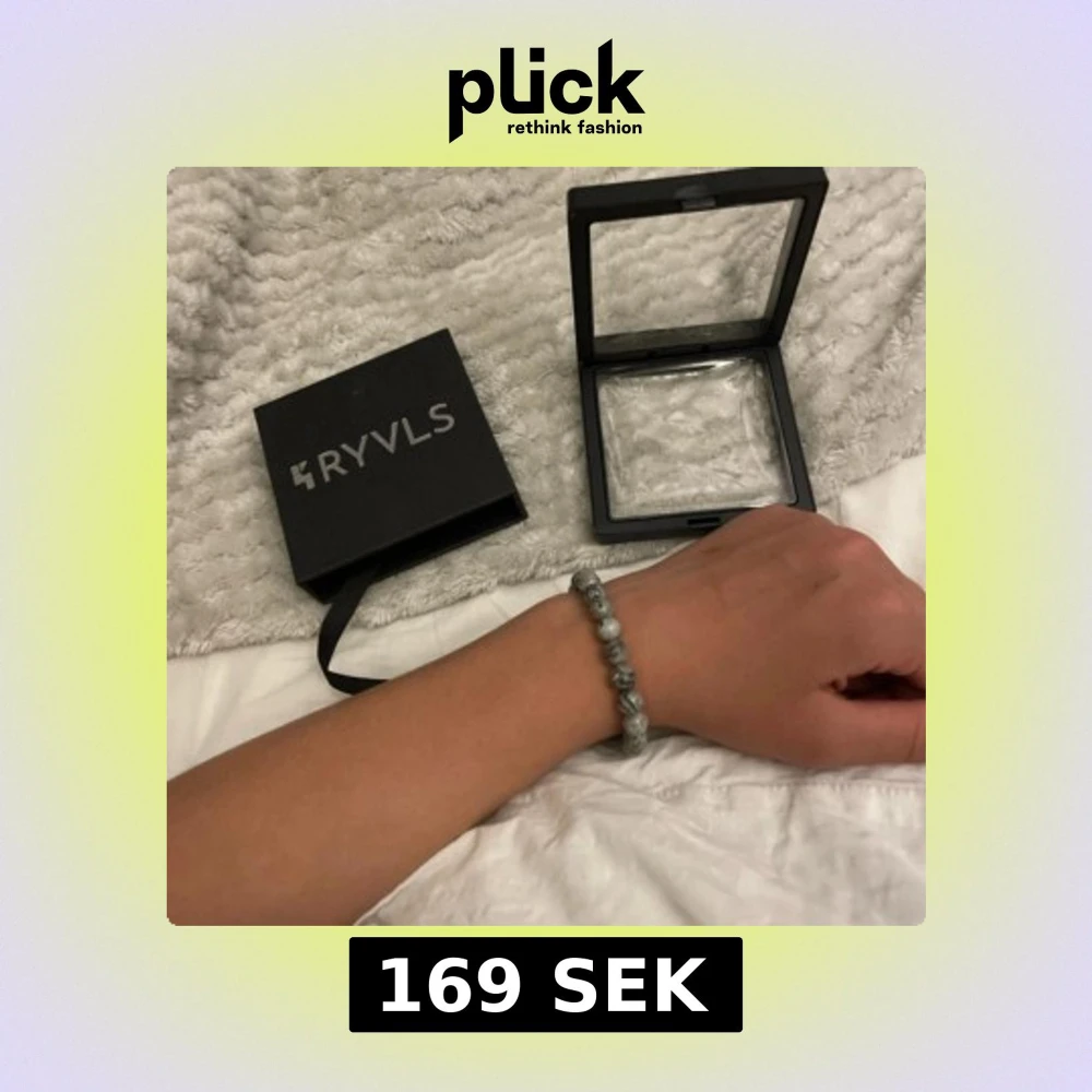 Säljer ett snyggt armband från RYVLS med gråmelerade pärlor och en metallisk detalj. Armbandet levereras i en elegant svart ask med genomskinligt lock. Perfekt accessoar för att lyfta din stil.