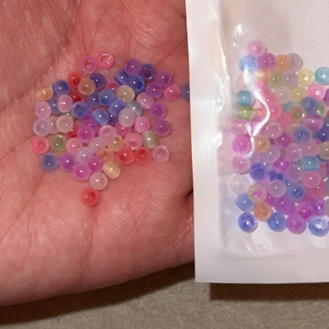 Olika färger på pärlorna. Nya