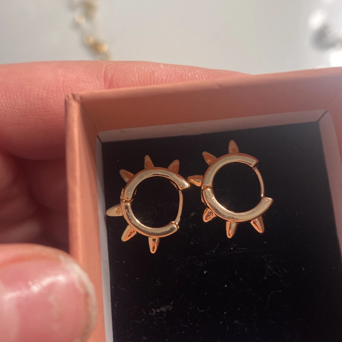 Snygga guldörhängen i form av ringar med taggar runtom. Perfekta för att ge en edgy touch till din stil. Kommer i en fin ask.