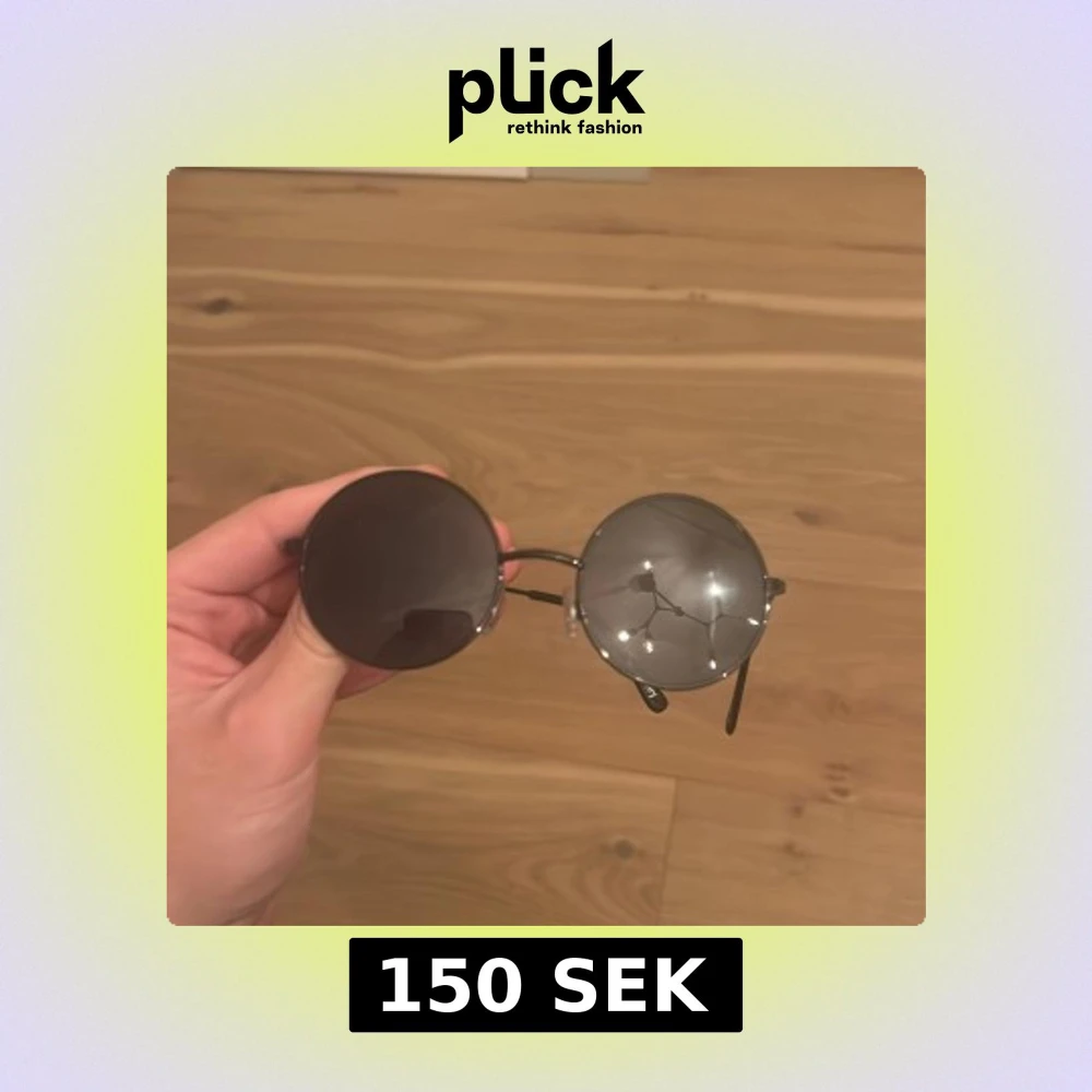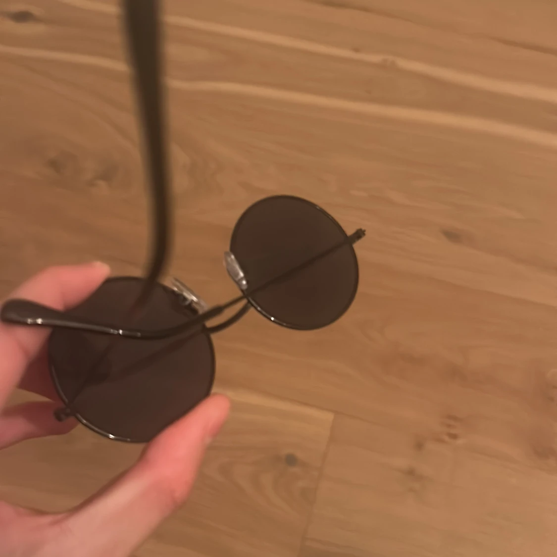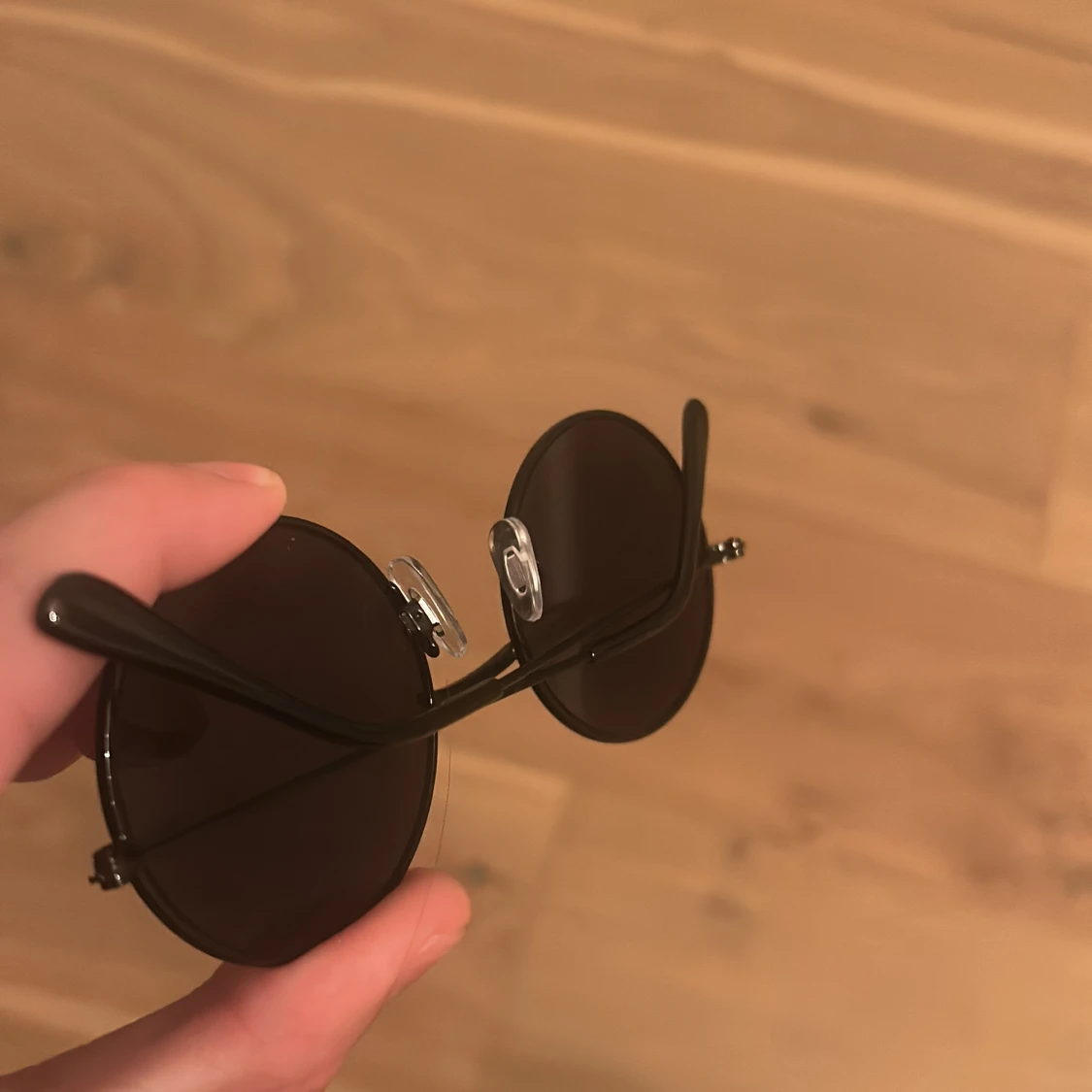 Snygga solglasögon med rund form och svarta glas. Bågarna är tunna och i metall med näskuddar för extra komfort. Perfekt accessoar för en cool och retro look.