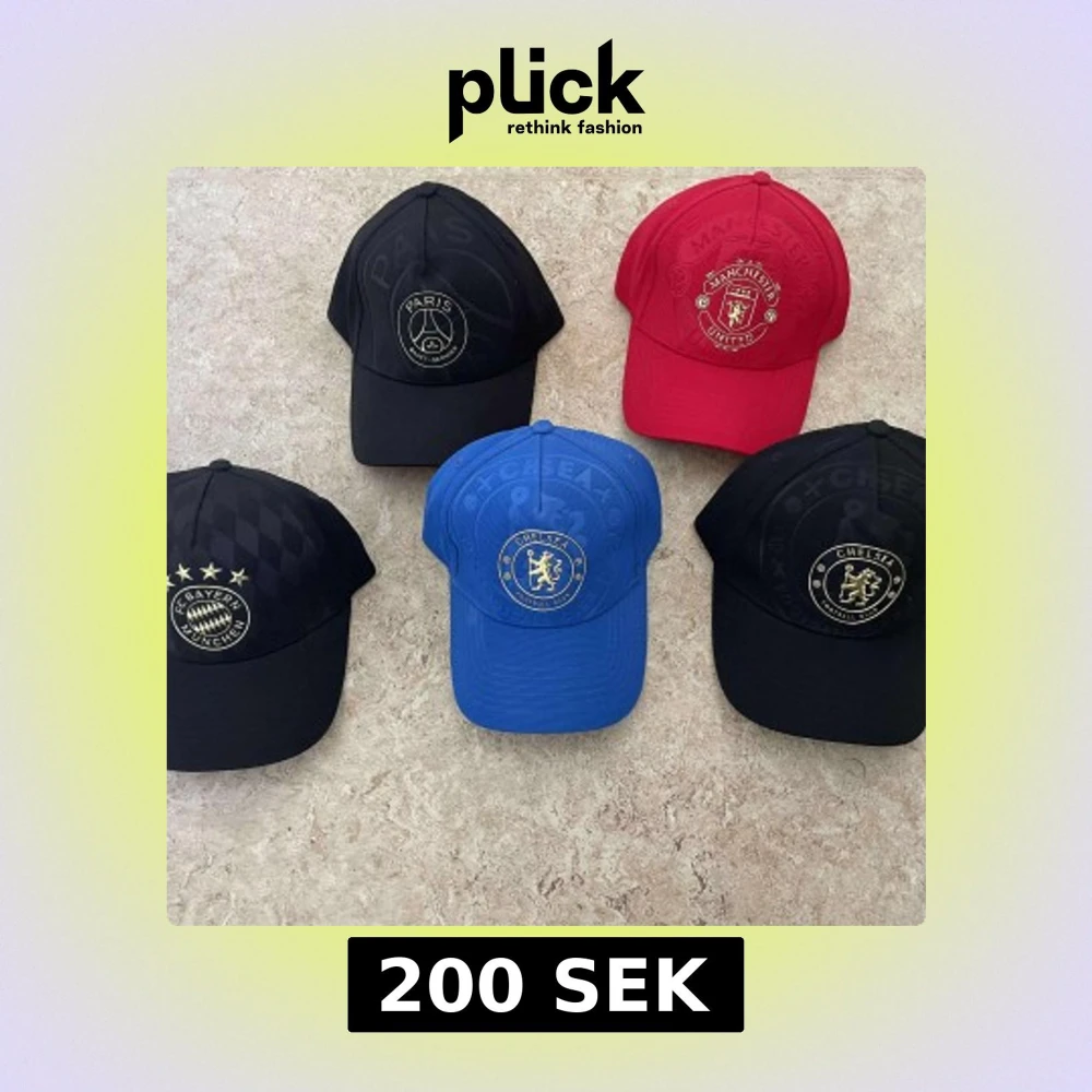 Snygga kepsar med broderade loggor från Manchester United, Chelsea, PSG och Bayern München. Finns i svart, röd och blå. Klassisk form med böjd skärm och justerbar passning. Perfekt för dig som vill visa vilket lag du supportar.