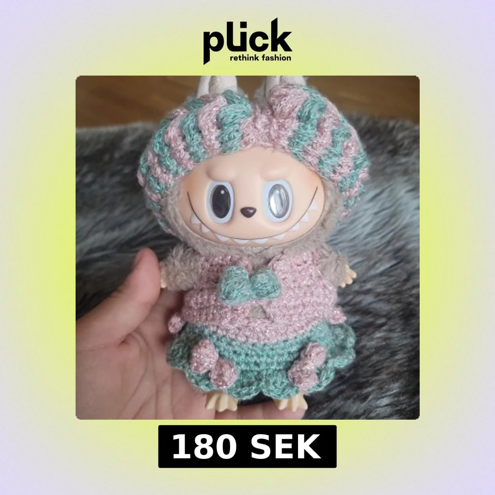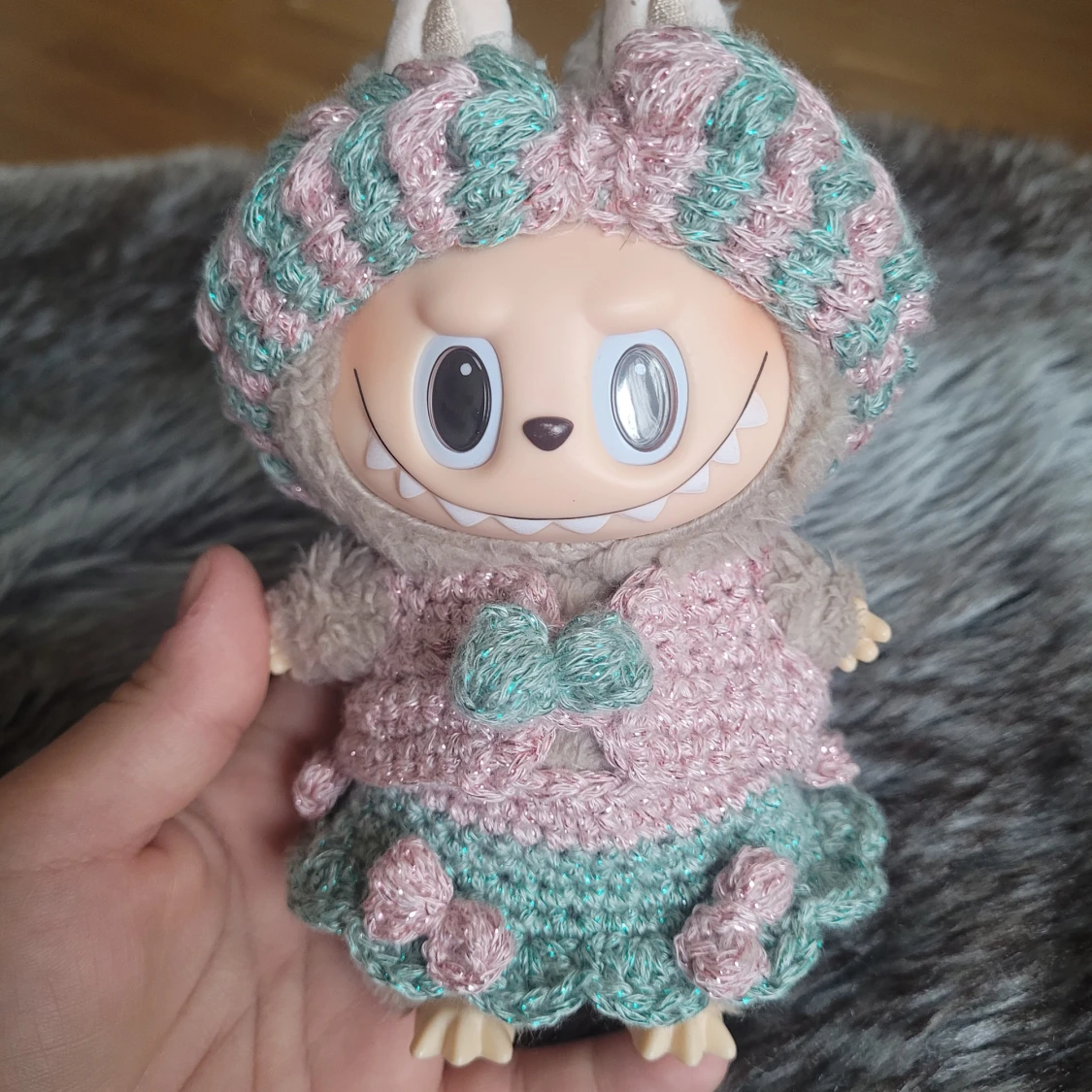 Söta handgjorda labubu kläder i ljusrosa och mintgrön. Perfekt för att ge din labubu docka en gullig och unik look.