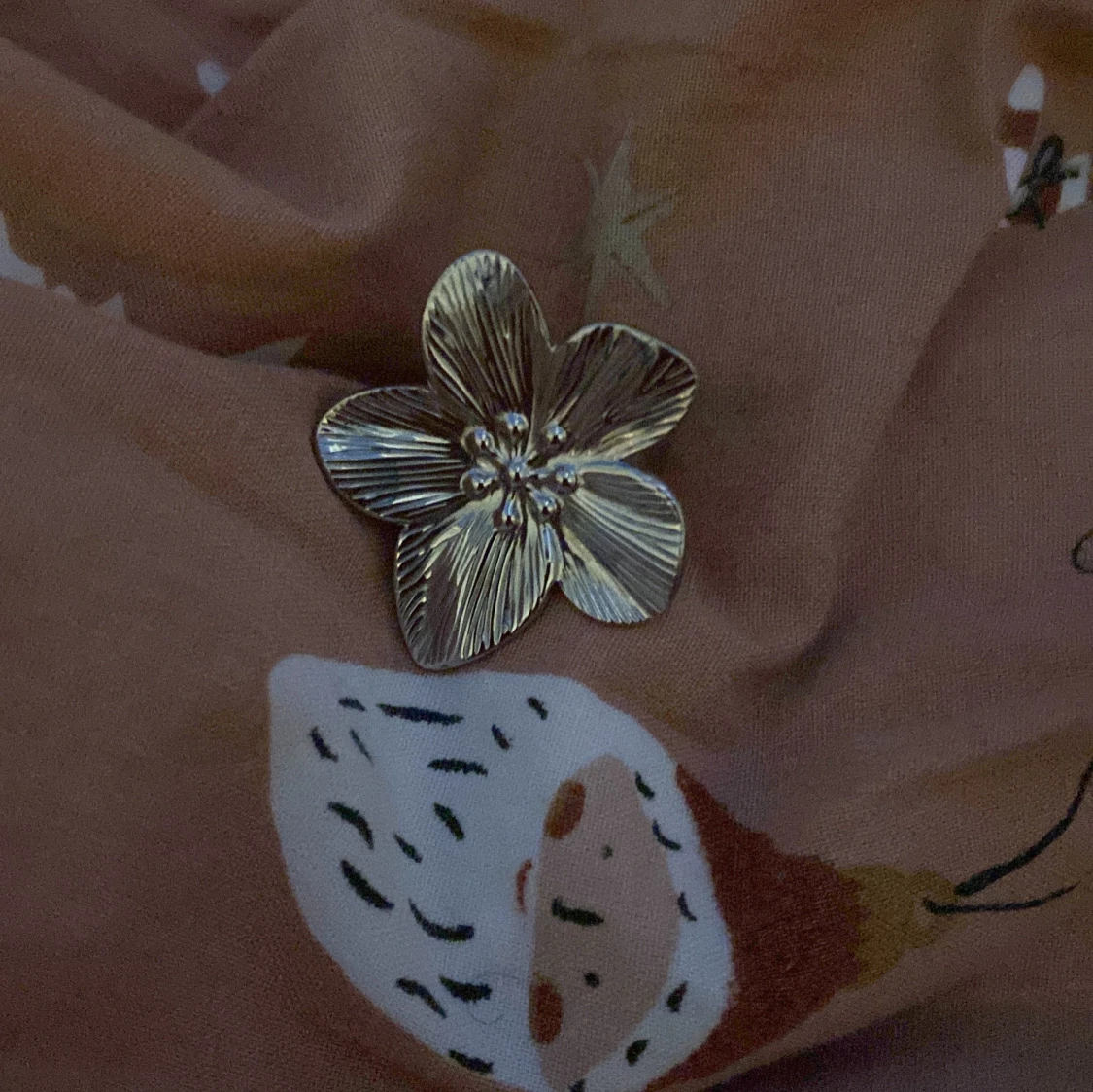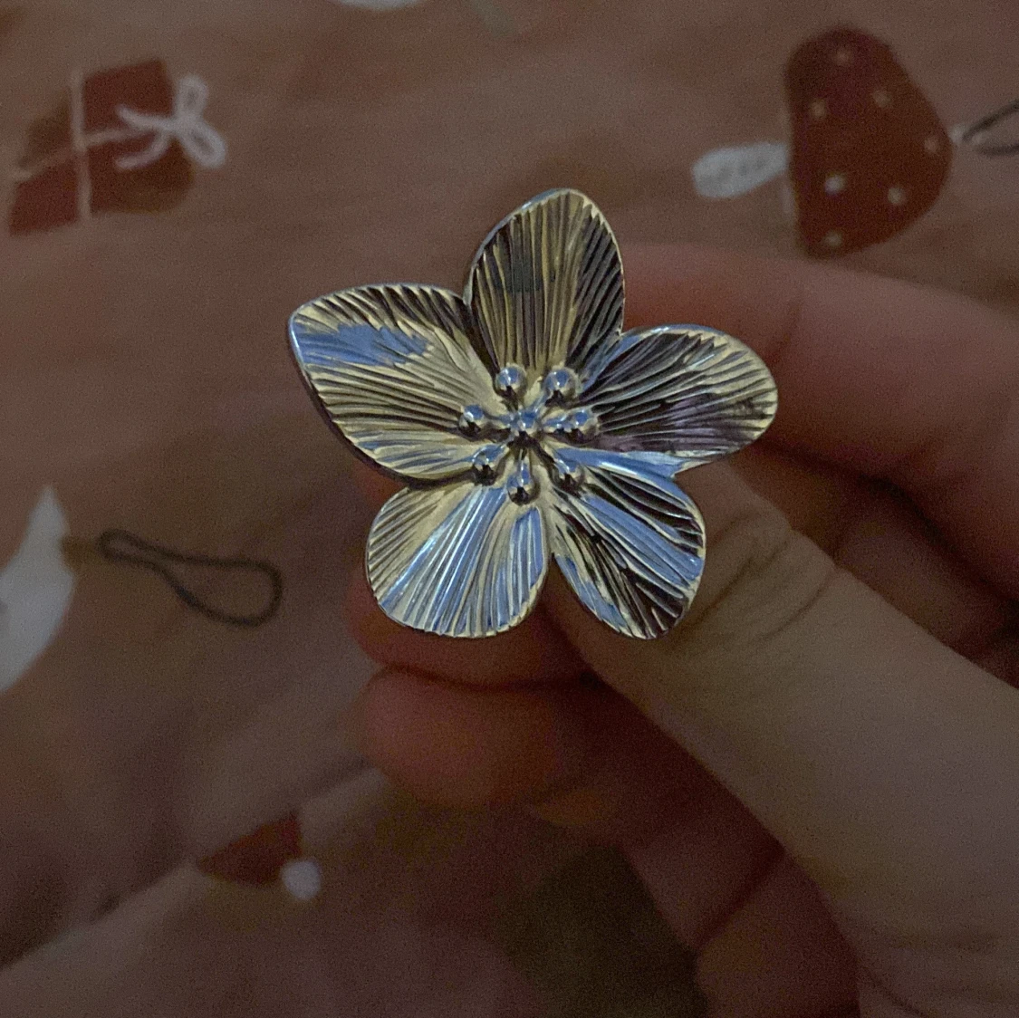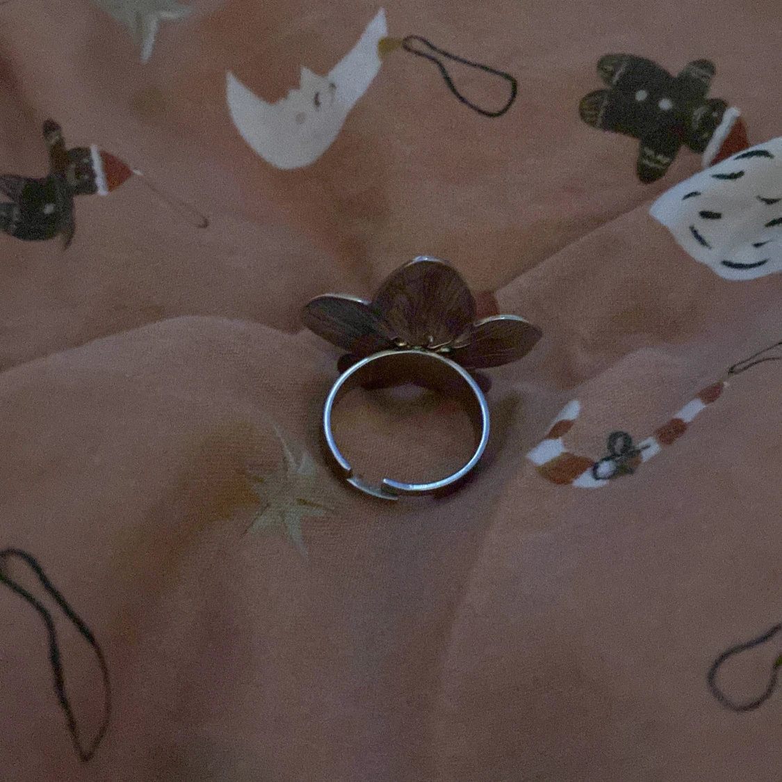 Snygg ring i form av en blomma med detaljerade kronblad och små pärlor i mitten. Perfekt för att ge en elegant touch till din outfit. Ringen har en justerbar storlek för att passa de flesta fingrar. Rostfritt stål!💕