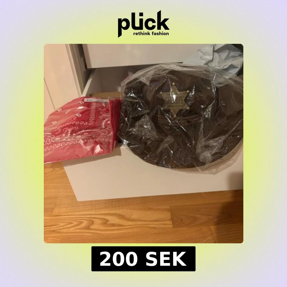 Snygg brun cowboyhatt med ett coolt sheriffmärke framtill. Perfekt för att ge en autentisk cowboy-look. Hatten är förpackad i plast och redo för användning. Även den röda tillkommer 🤩 Helt oanvänt