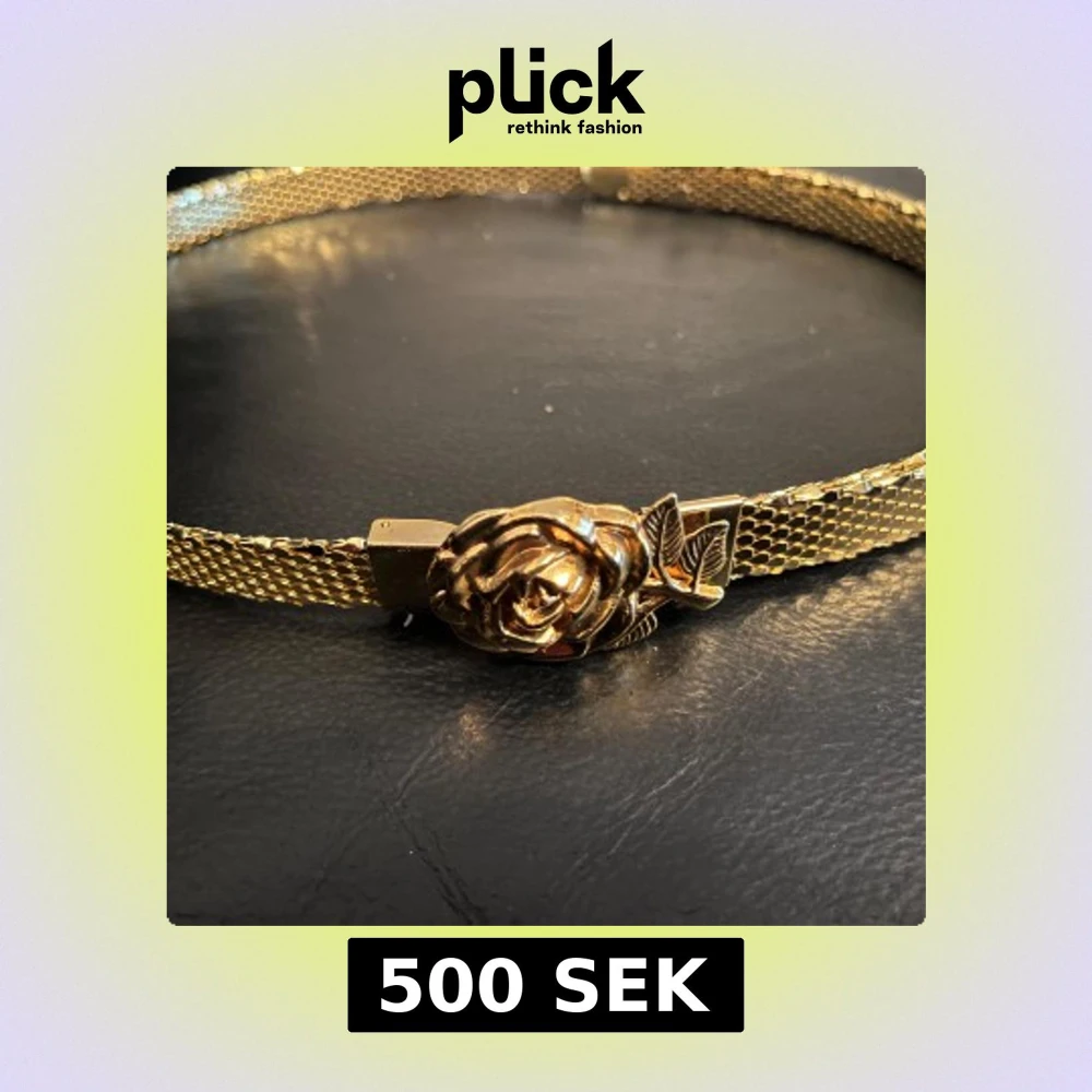 Snyggt guldigt bälte med en unik rosdetalj på spännet. Bältet har en nätliknande design som ger en elegant touch. Perfekt för att lyfta vilken outfit som helst med en touch av glamour.