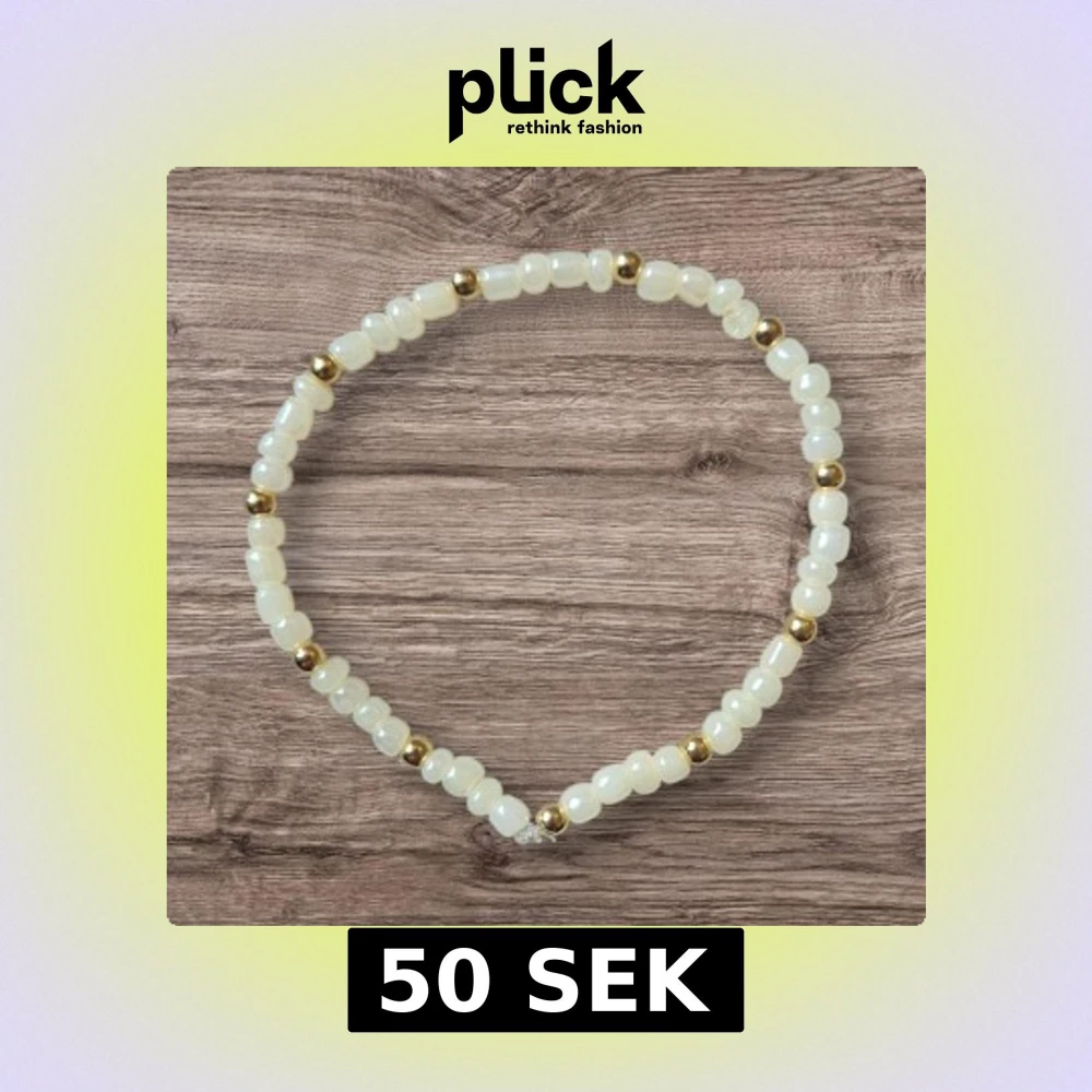 Elegant armband med vita pärlor och små guldfärgade pärlor emellan. Perfekt för att ge en stilren touch till din outfit. Armbandet är elastiskt och passar de flesta handleder.